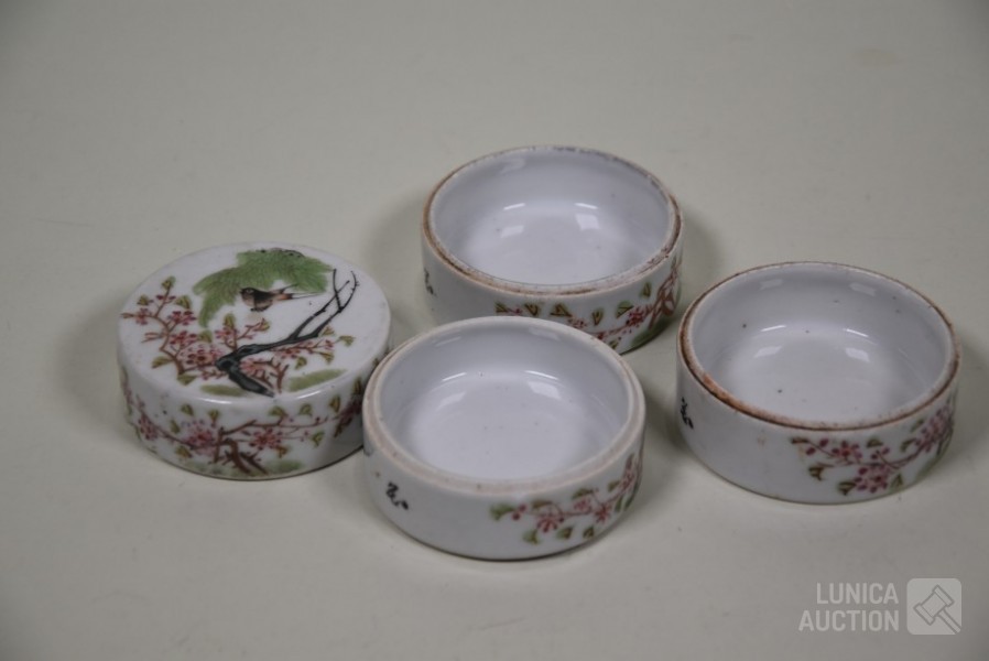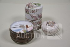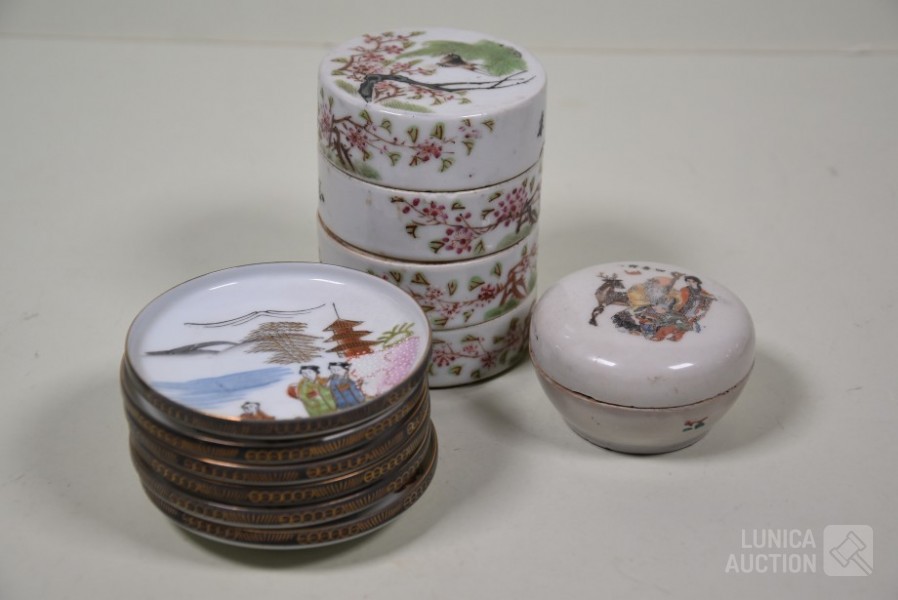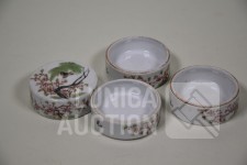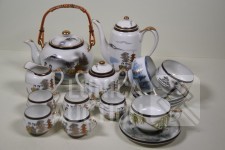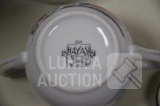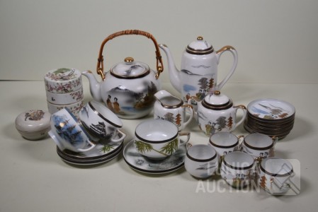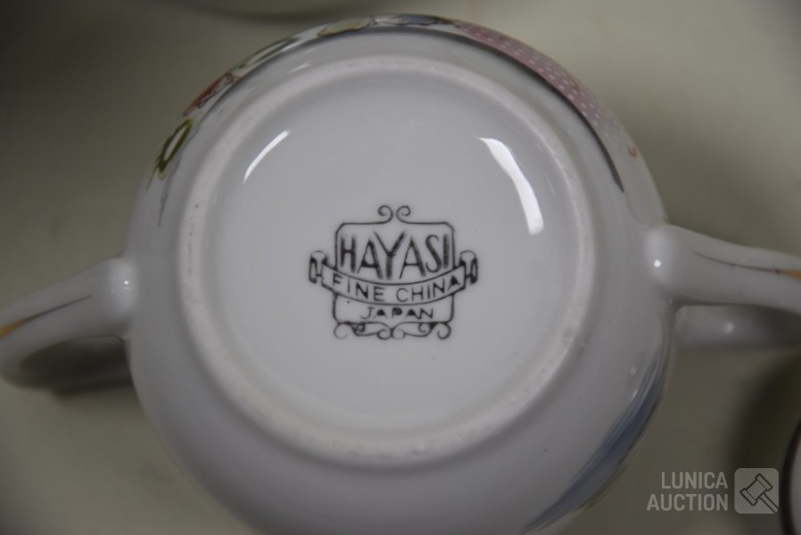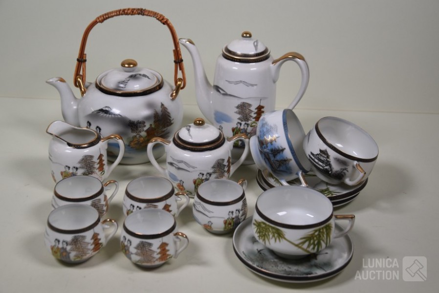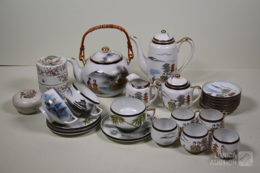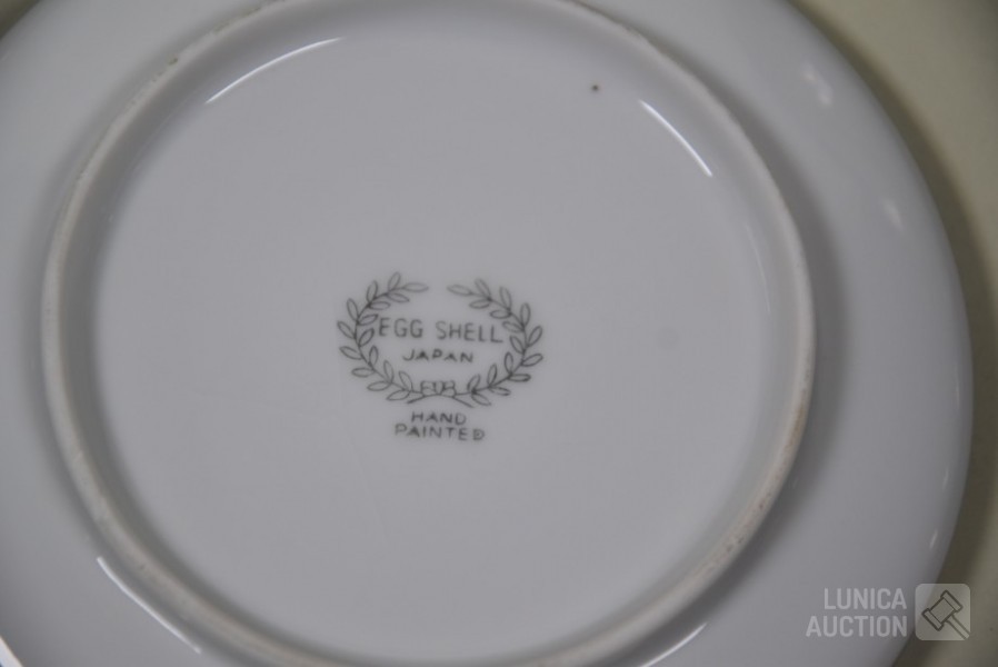 O.a. 7x Theekopjes en schotels in eierschaal porselein, theepotten, melkkan, suikerpot enz. Mooie verzameling