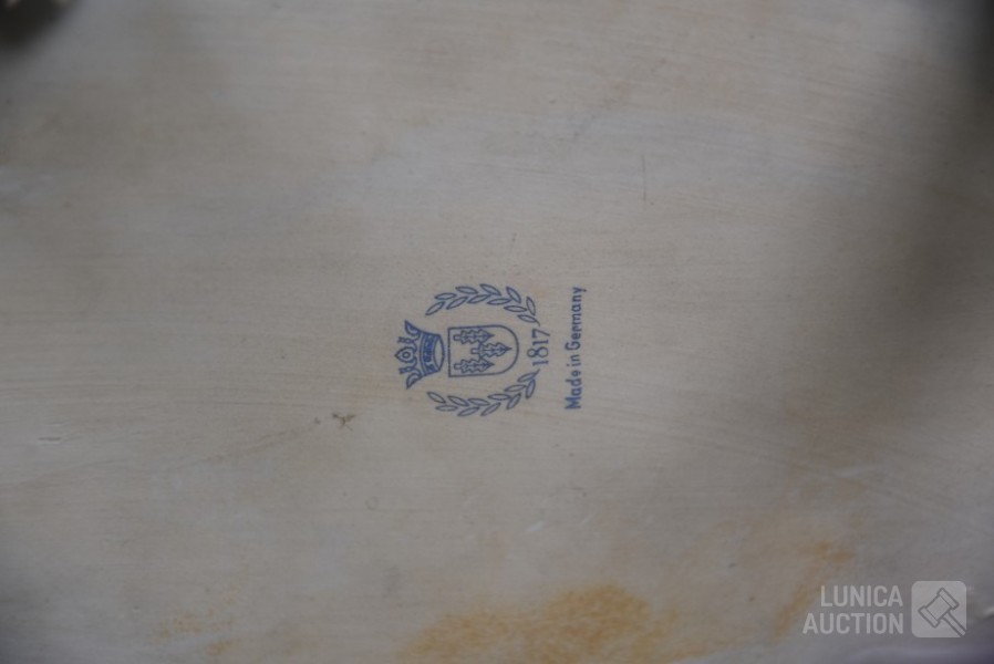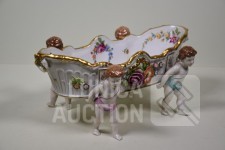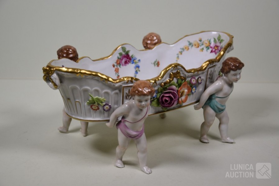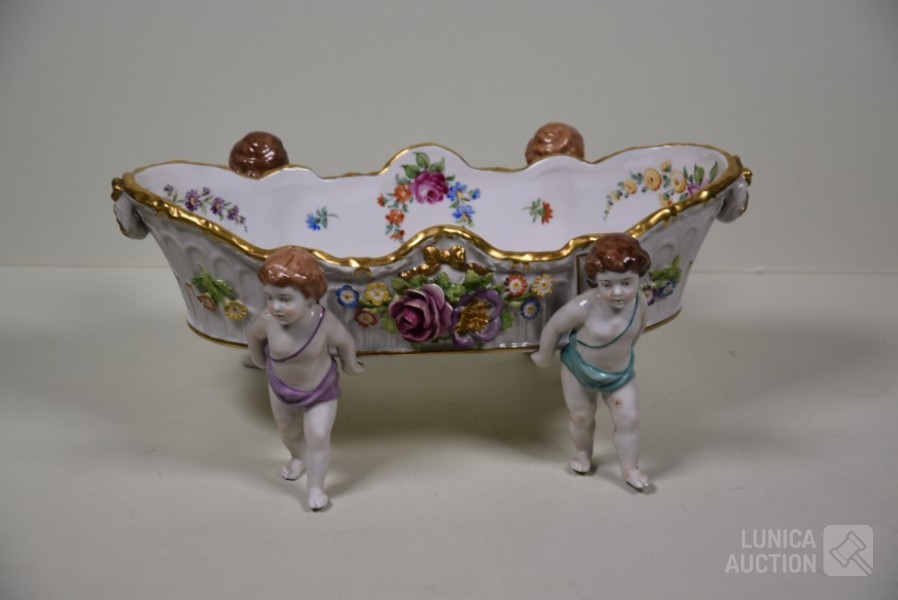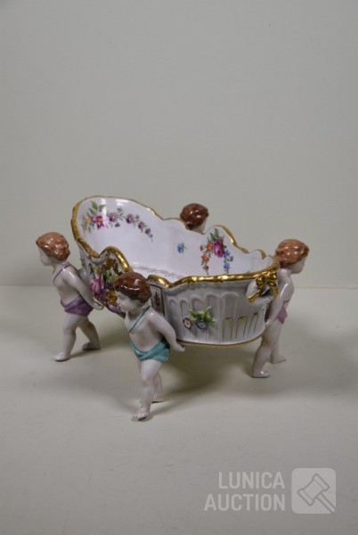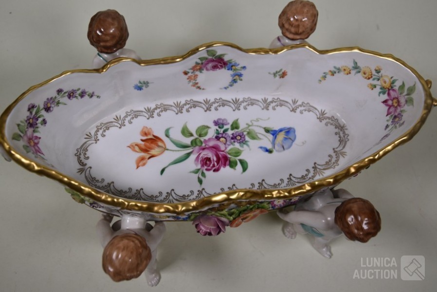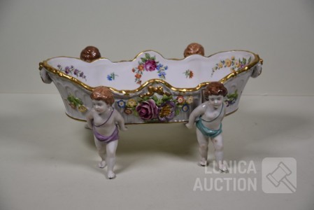 schaal met putti, in goede staat. Afmeting (bxdxh) 34x22x15 cm.