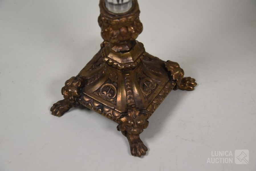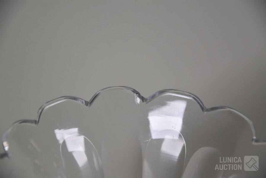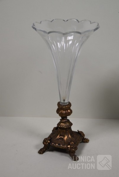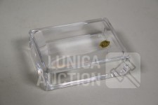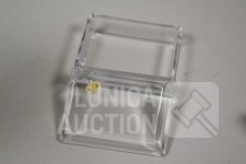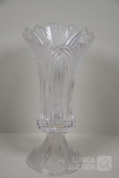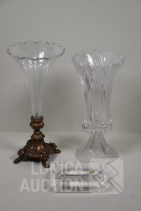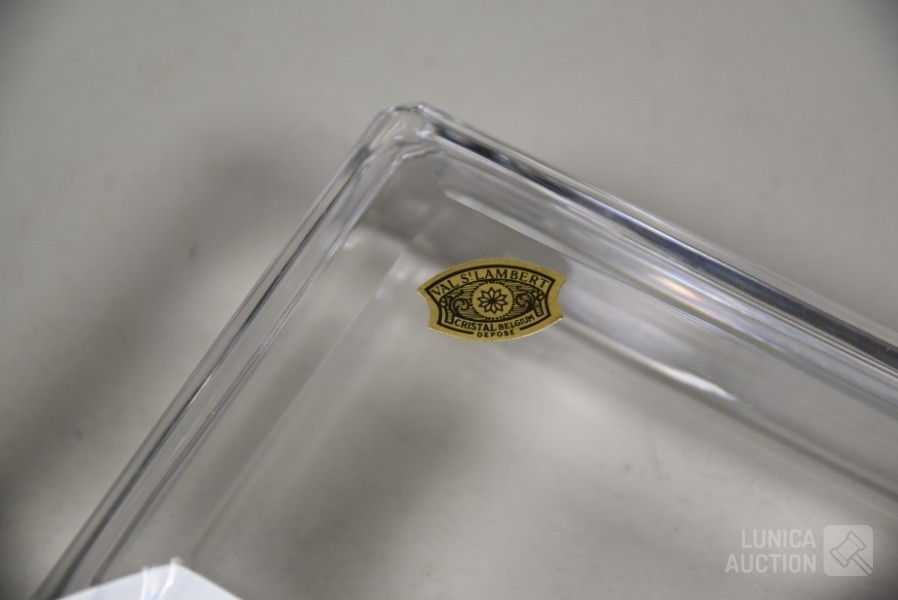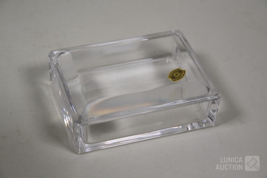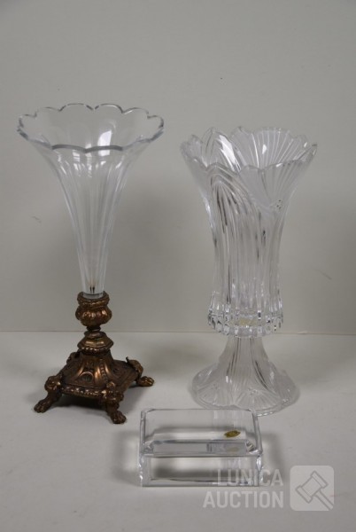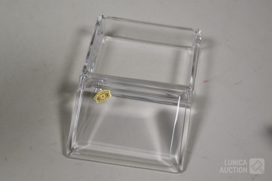2 vazen, hoogte 29cm en 31 cm; Opbergdoosje, Val Saint Lambert, in facet geslepen glas, afmeting (bxdxh) 11x9x5 cm.