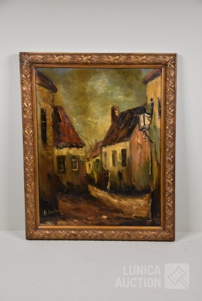 Gesigneerd L.O., ingelijst. Afmeting 47x58 cm.