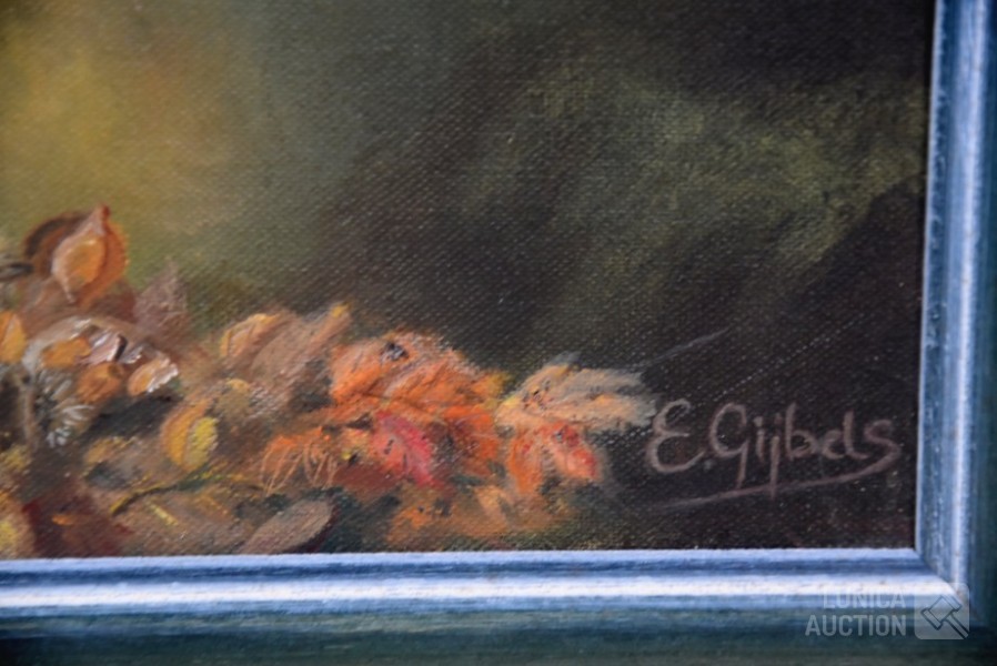 Olieverf op doek, ingelijst, afmeting 45x35 cm. Gesigneerd R.O.