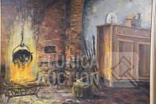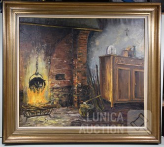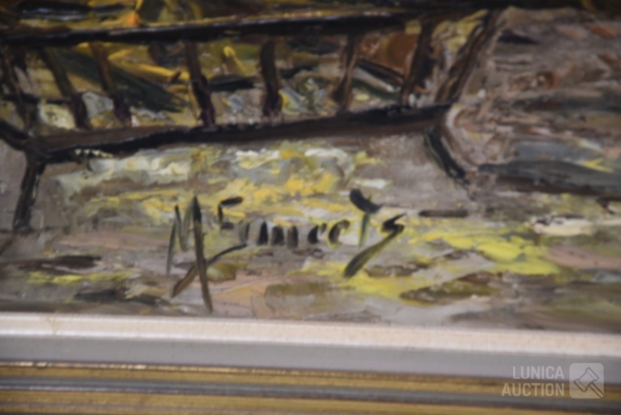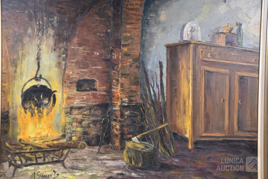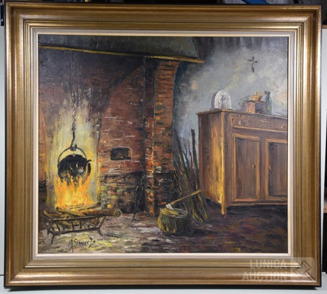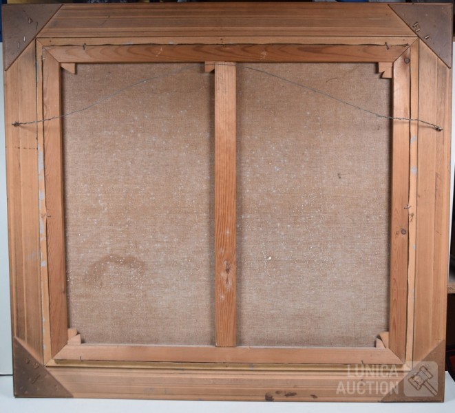 Olieverf op doek, Ingelijst, afmeting 100x90 cm. Gesigneerd L.O.