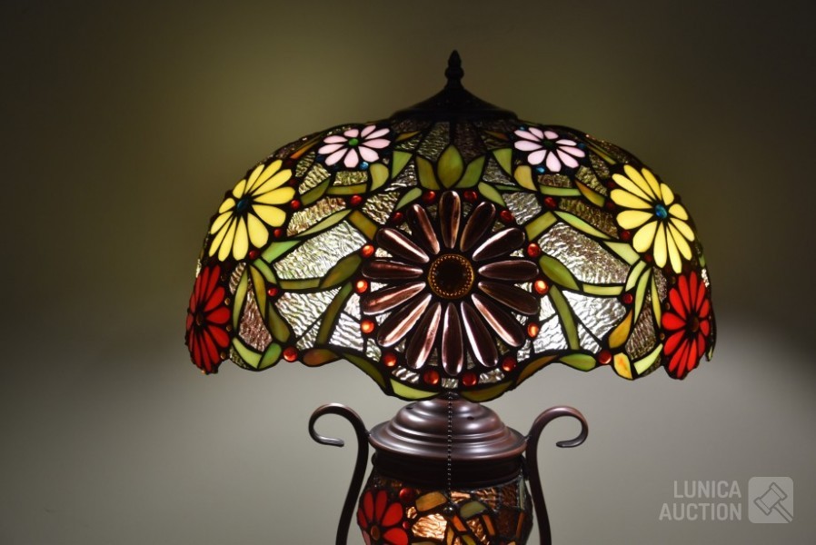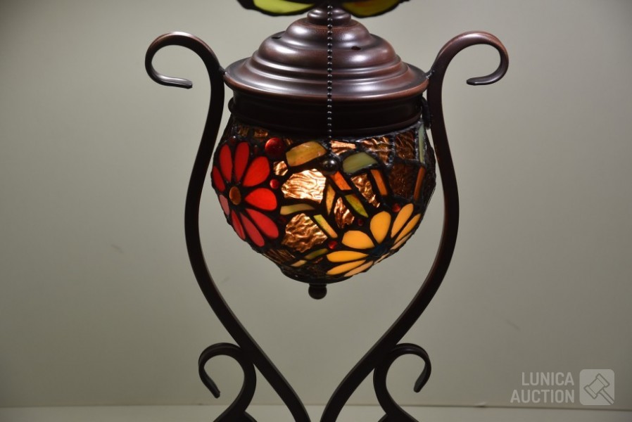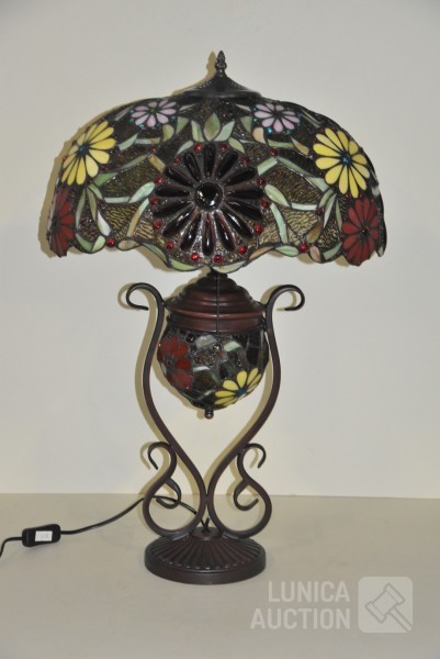 Hoogte 60 cm, doorsnede lampenkap 38 cm. Met trekschakelaars. Zonder lampen. In nieuwstaat.