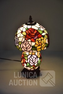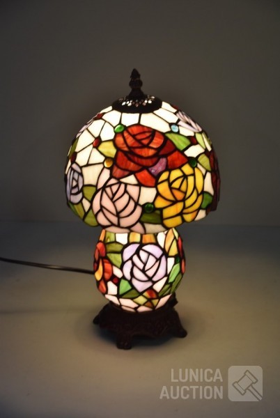 Hoogte 35 cm, doorsnede lampenkap 18 cm. In nieuwstaat.