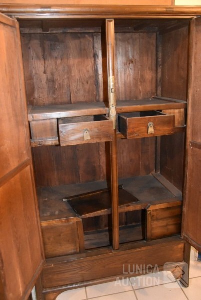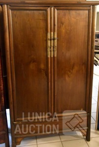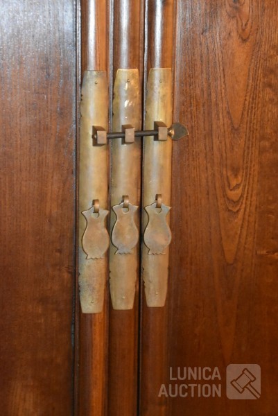 koperen beslag, 2 legplanken, 2 laden en verborgen luik in binnenzijde kast afmeting (bxdxh) 103x55x173cm.