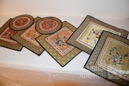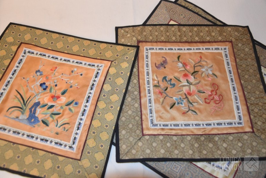7 stuks, Chinees, zijde, handgeborduurd.