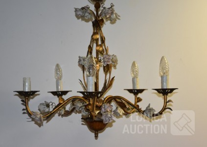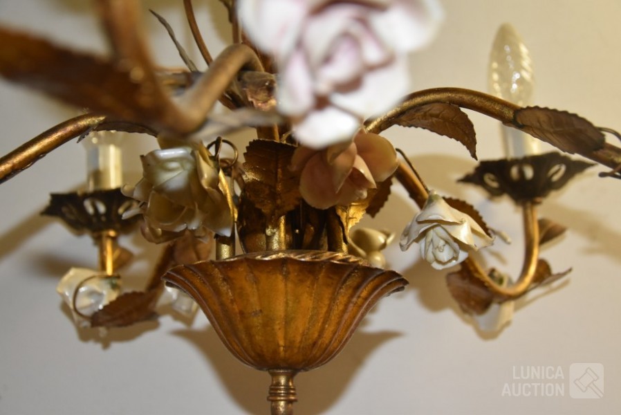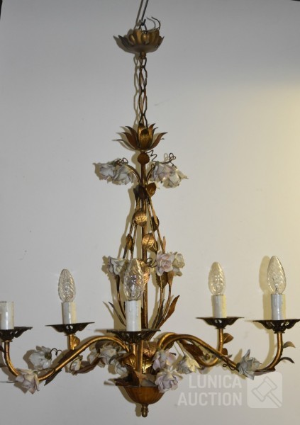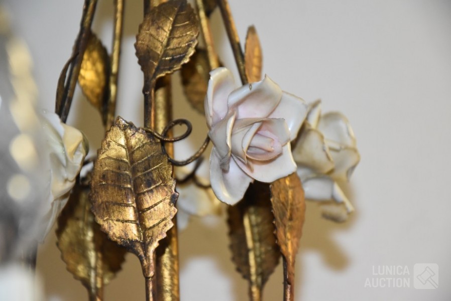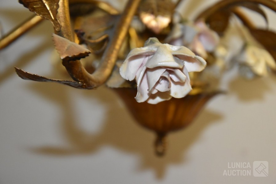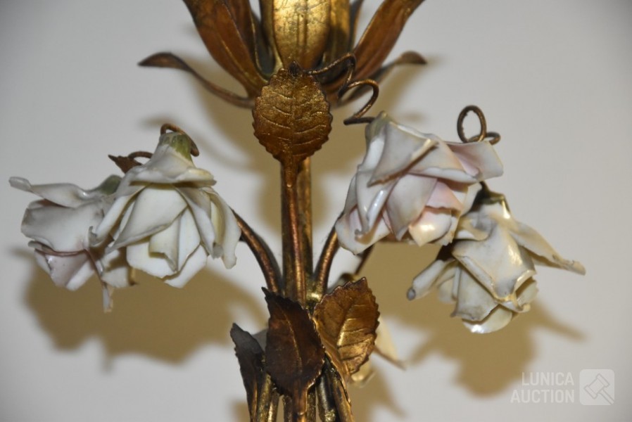 Hoogte 70 cm. Doorsnede 55 cm. Enkele bloemen ontbreken.