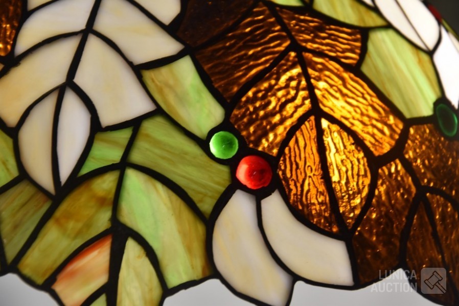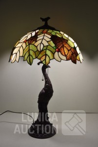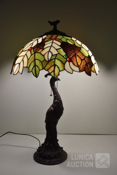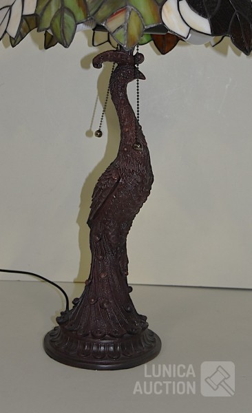 Hoogte 67 cm, doorsnede lampenkap 42 cm. Met trekschakelaars. Zonder lampen. In nieuwstaat.