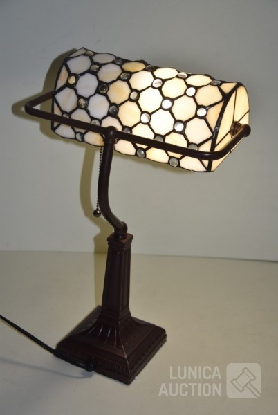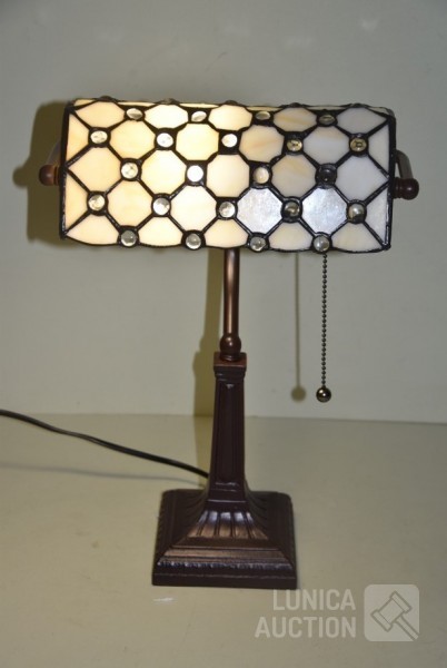 Hoogte 40 cm, afmeting lampenkap 27x18 cm. Met trekschakelaar. Zonder lamp. In nieuwstaat.