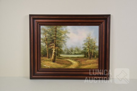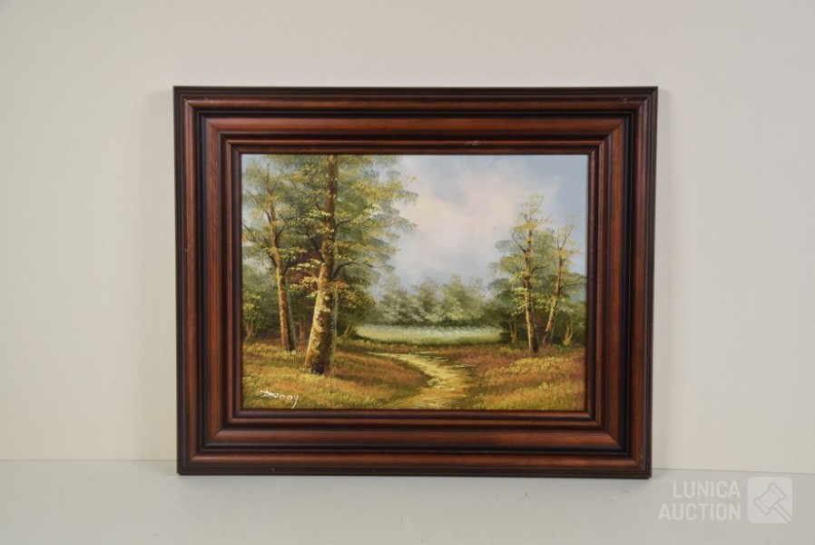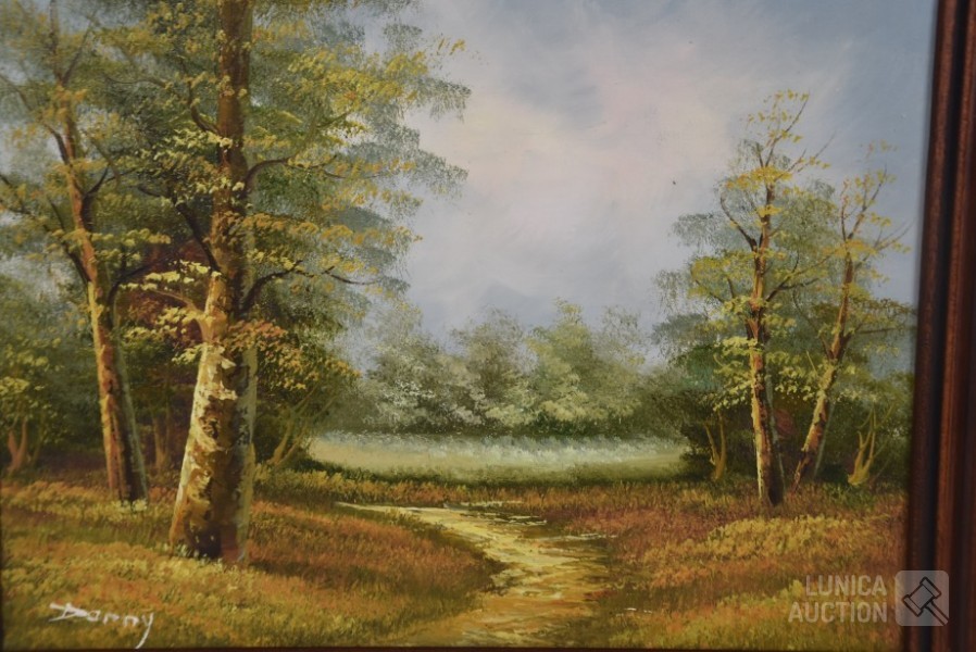 "landschap", ingelijst. Afmeting 53x43 cm. Gesigneerd L.O. met "Danny"