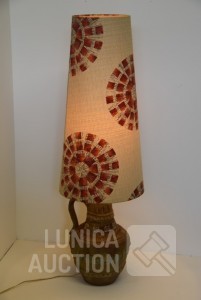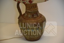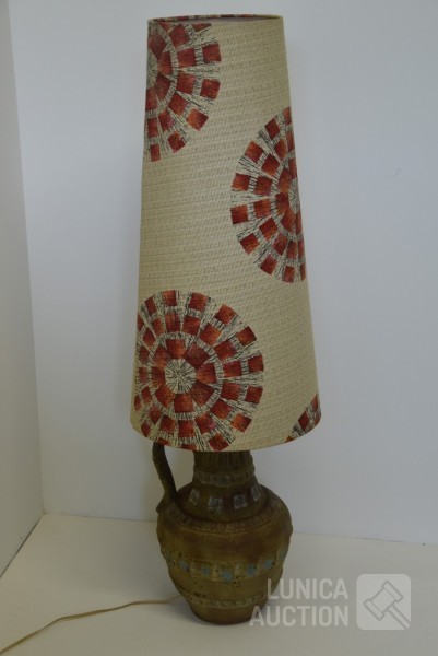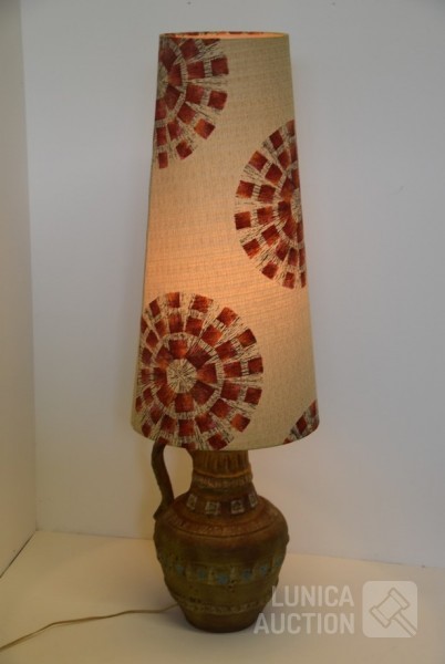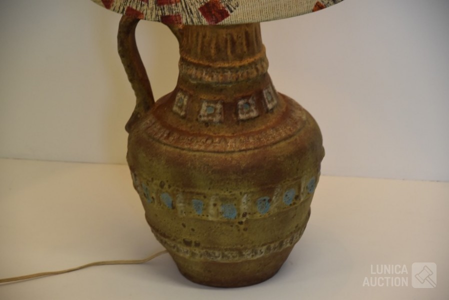 Keramieken vaas met lampenkap. Totale hoogte 130 cm!. Doorsnede lampenkap 40 cm. Vintage stekker moet worden vervangen.