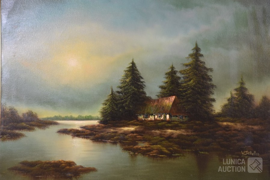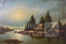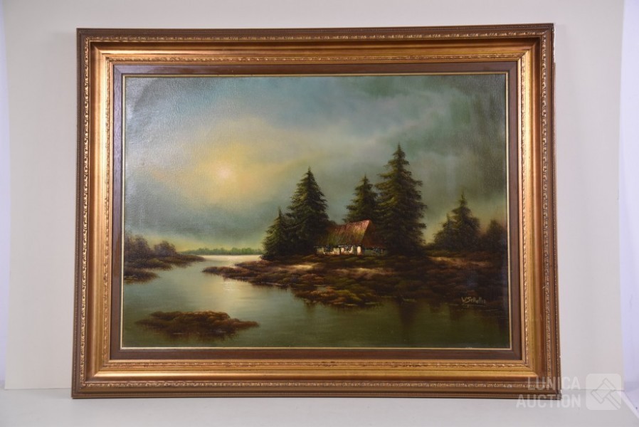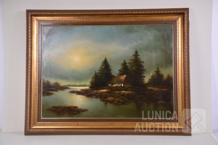 "landschap", Olieverf op doek, ingelijst. Afmeting 85x67 cm. Gesigneerd R.O.