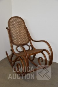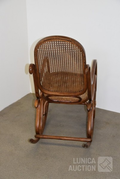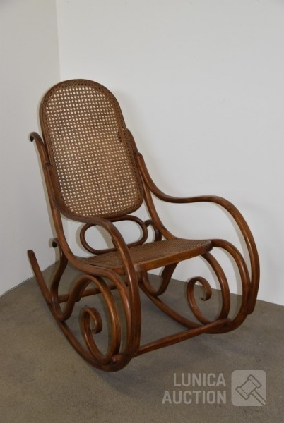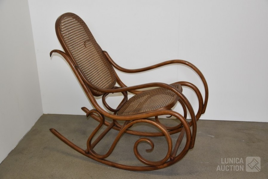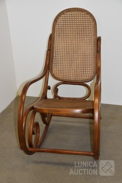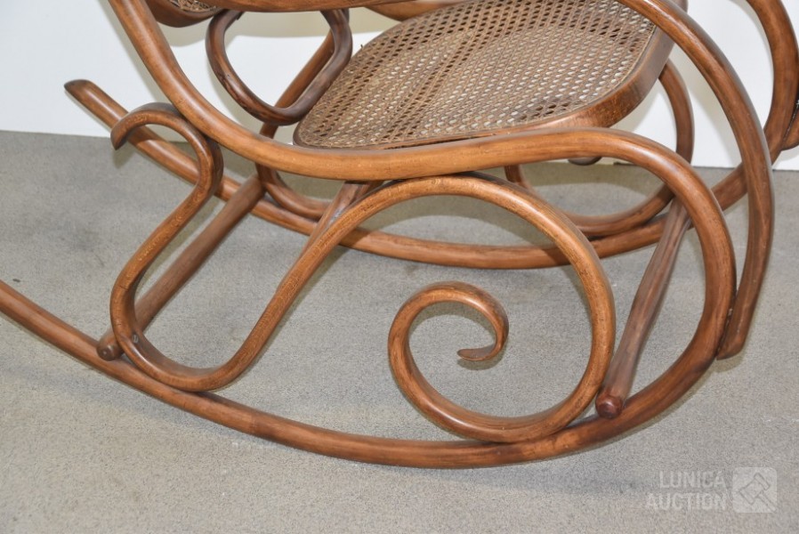 Gebogen hout."in thonet stijl". Afmeting (bxdxh) 52x110x105 cm. In goede staat.