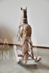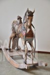 composiet in hout-look, op houten onderstel. Afmeting (Bxdxh) 155x46x136 cm!