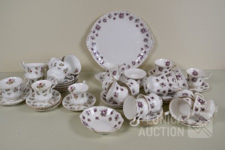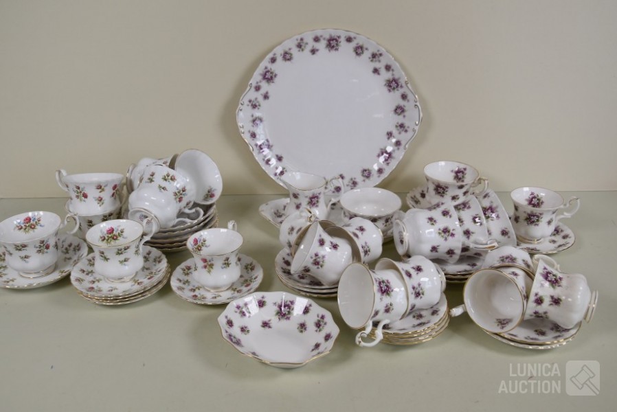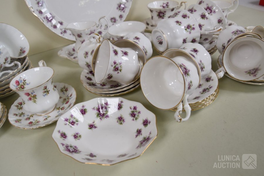 ca. 53 stuks, decor "sweet violets" en "winsome"
