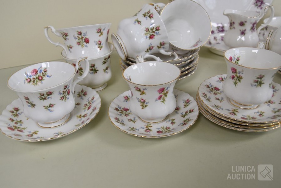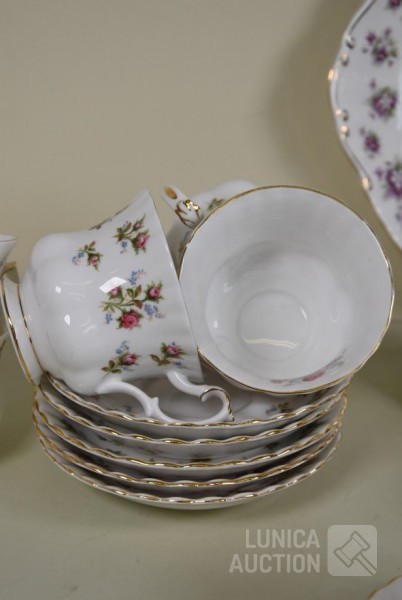 O.a. kop en schotels, roomstel, taartschotel enz. Mooie verzameling.