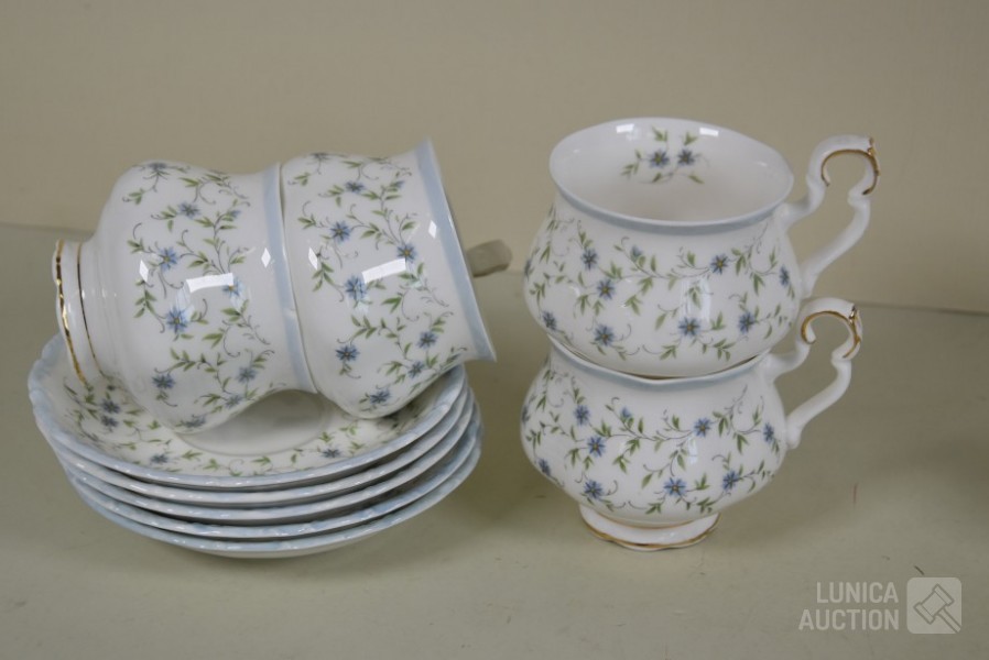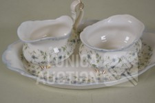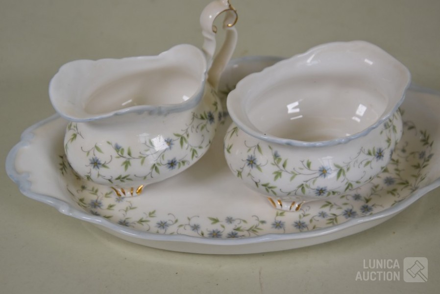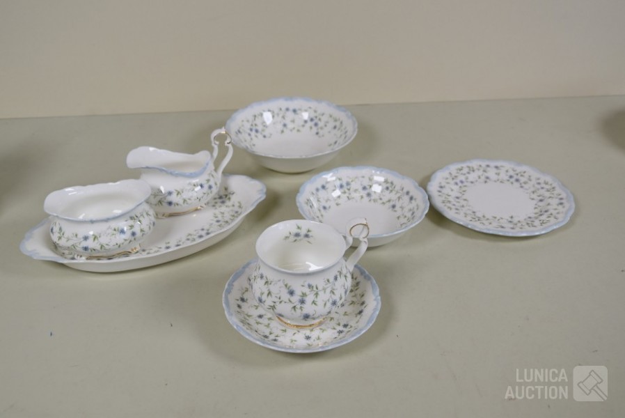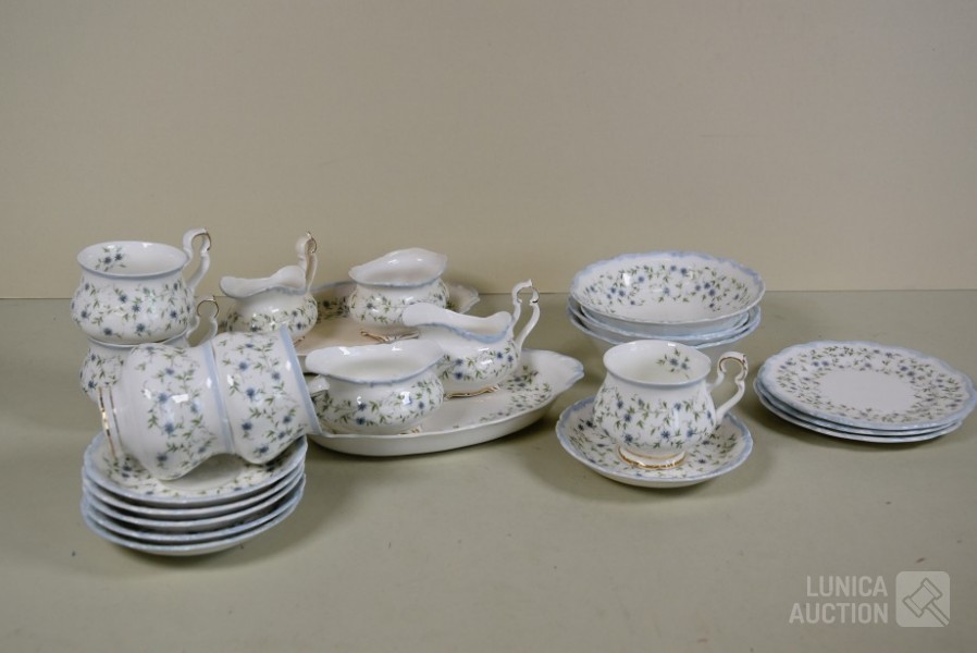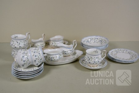 O.a. kop en schotels, roomstellen, gebaksborden, schaaltjes enz. Mooie verzameling.