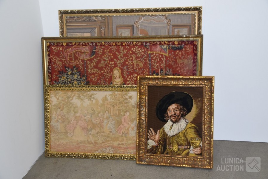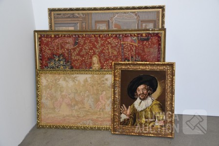 Ingelijst, afmeting 53x65 cm; 104x65 cm; 105x108 cm; 120x88 cm.(lijst beschadigd)