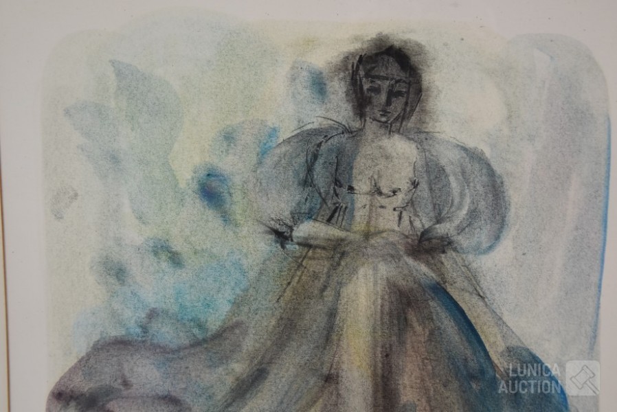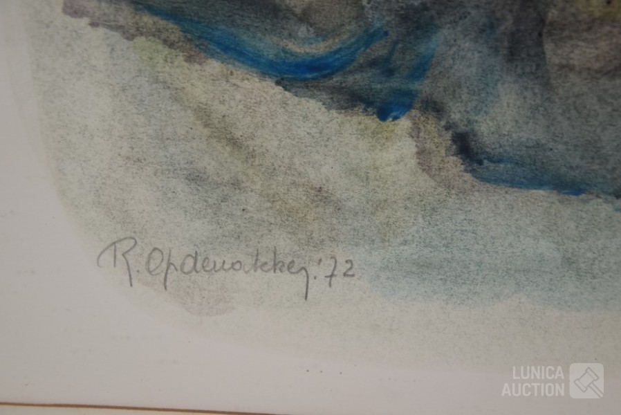 Gesigneerd L.O. Ingelijst, achter glas, afmeting 40x50 cm