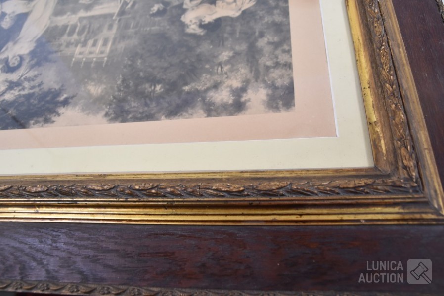 Lithografie van Leopold Verger, Parijs; Mooi ingelijst, achter glas. Afmeting (bxh) 80x70 cm