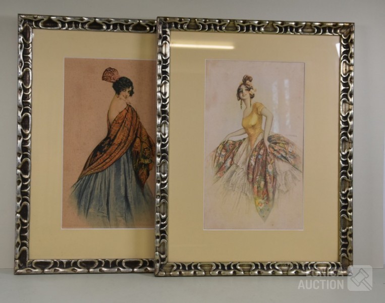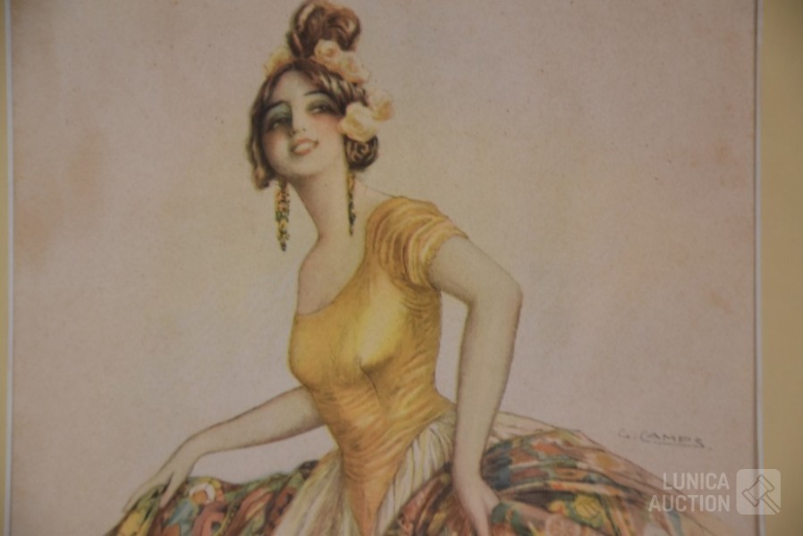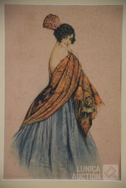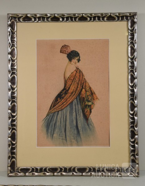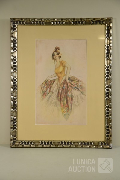"Art Nouveau", Mooi ingelijst, achter glas. Afmeting 56x72 cm. Ingelijst door inlijsterij Hubert knapen Tongeren