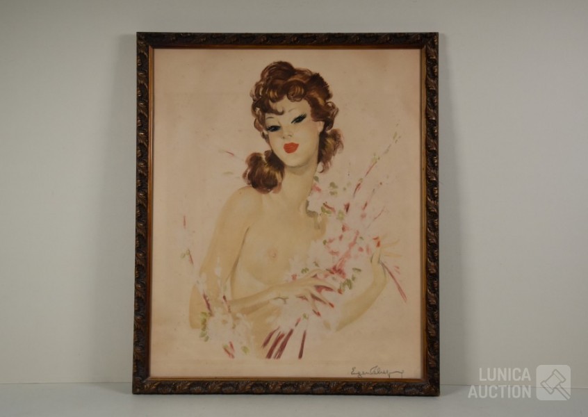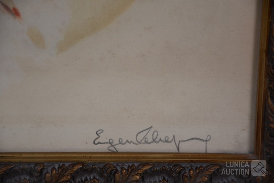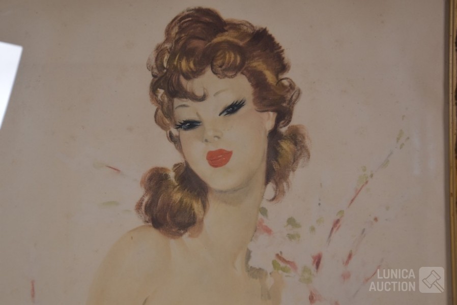 Mooi ingelijst, achter glas. Afmeting 55x65 cm. Gesigneerd R.O.