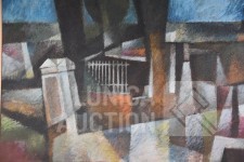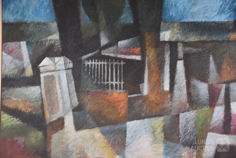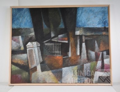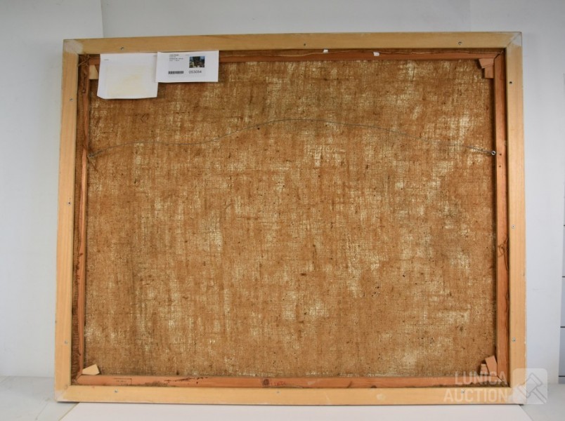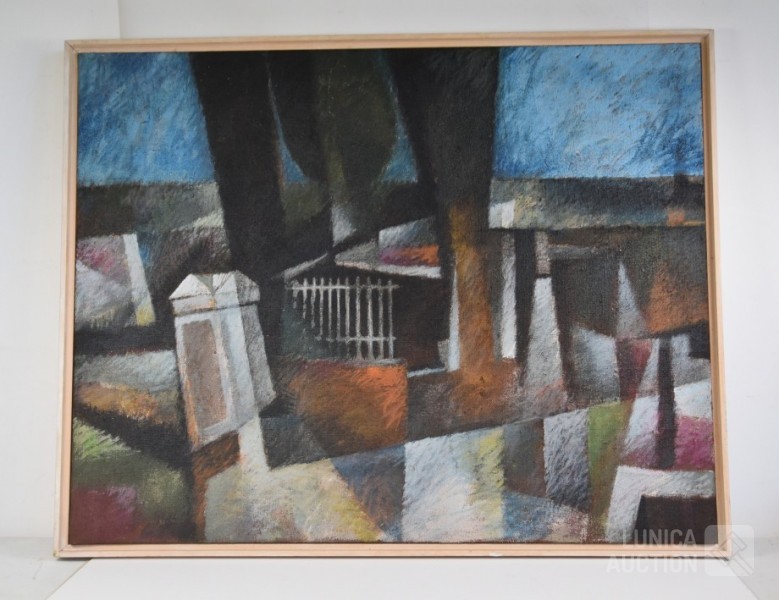 olieverf/mixed media op doek, zonder titel, ingelijst, afmeting 120x95 cm.