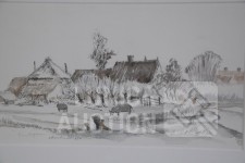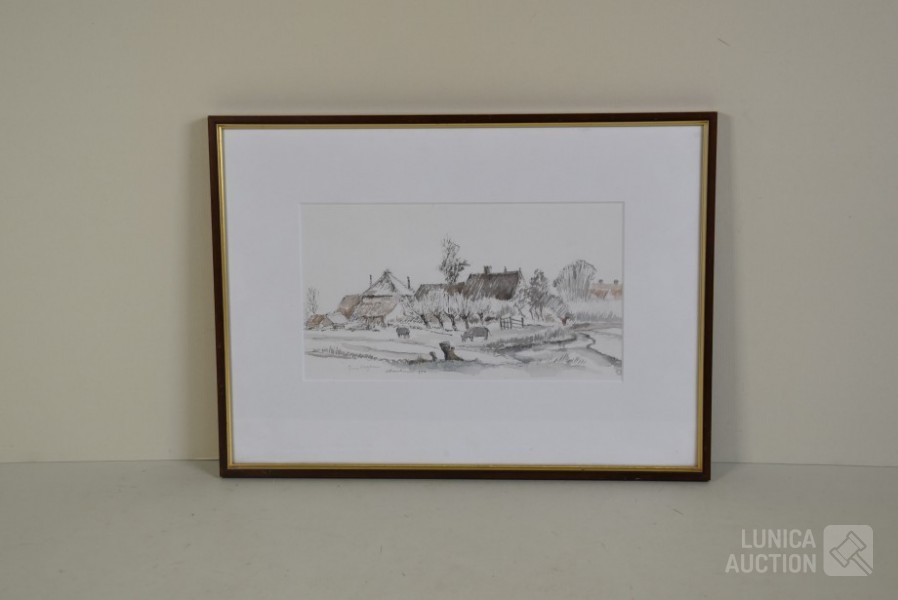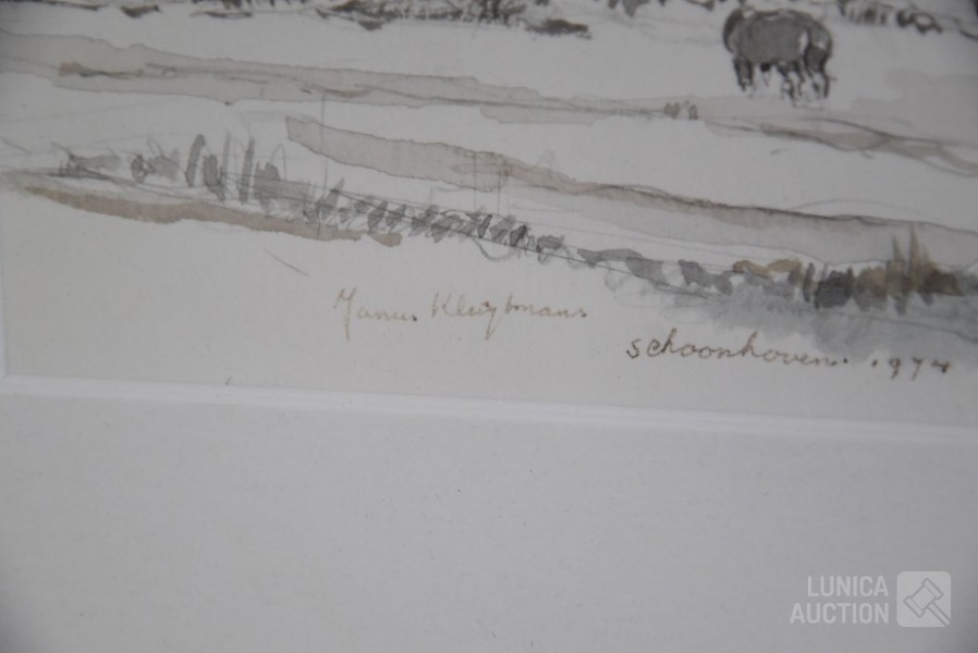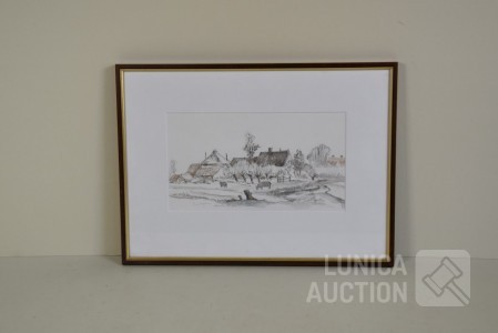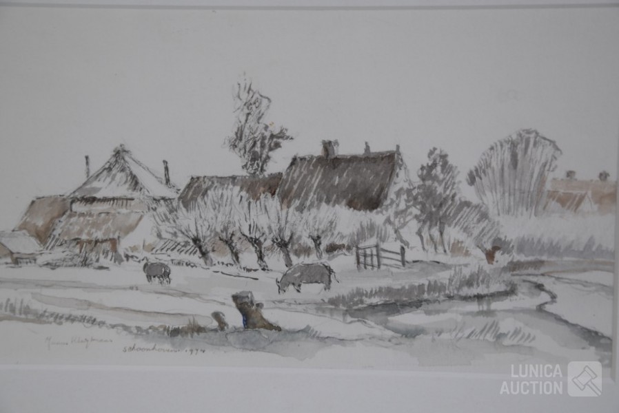 "Schoonhoven 1974", ingelijst, achter glas. Afmeting 43x32 cm