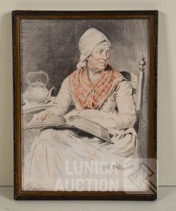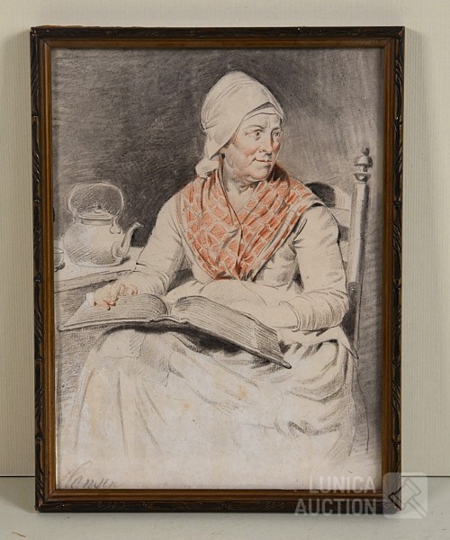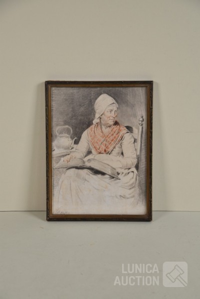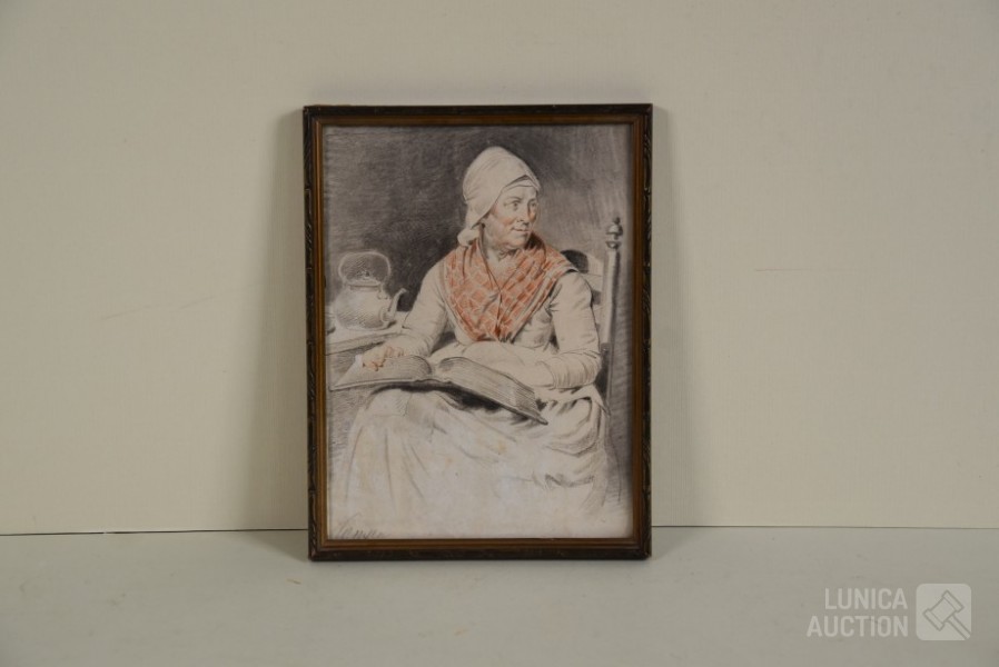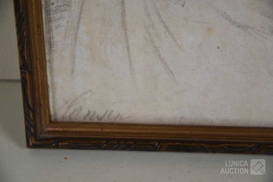 Gesigneerd L.O., ingelijst, achter glas. Afmeting 19x25 cm! Mooie tekening, is zeer gedetailleerd gemaakt, in 2 kleuren.