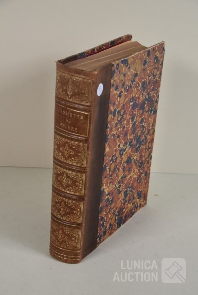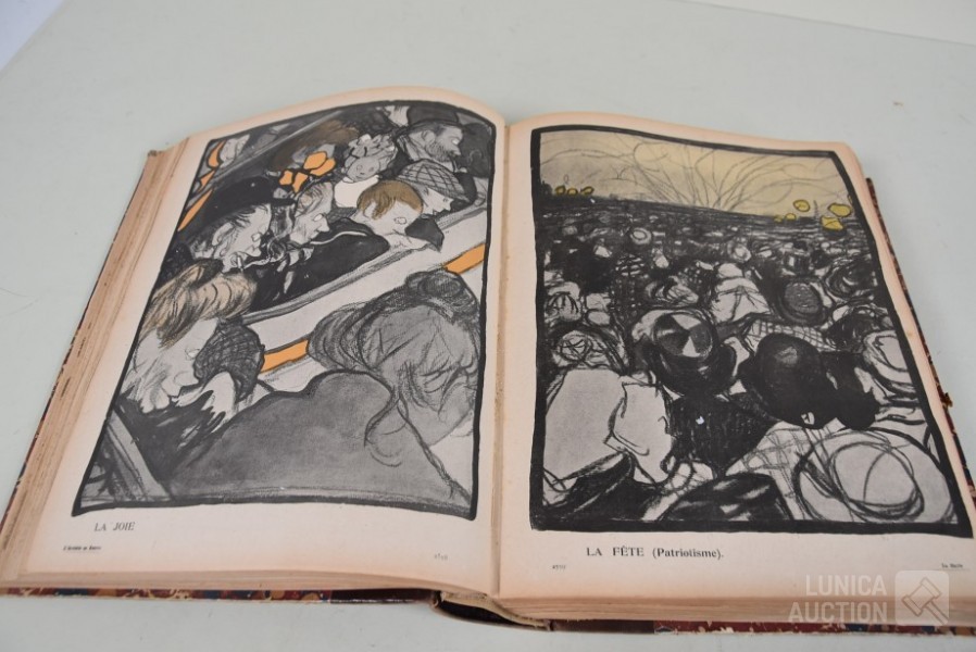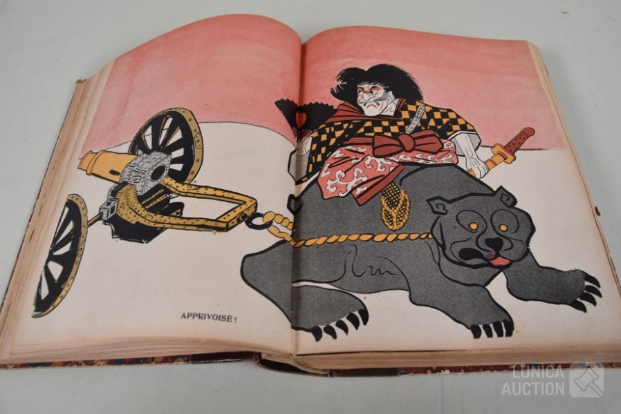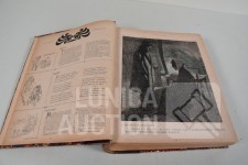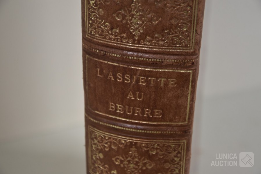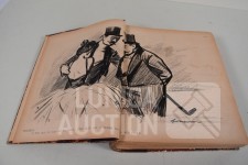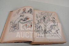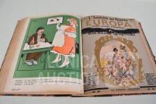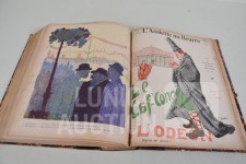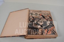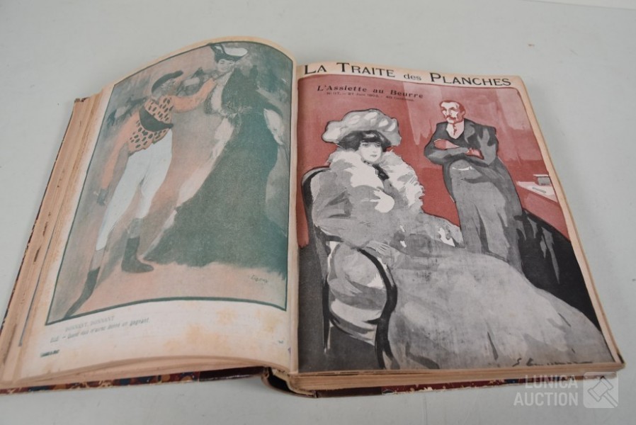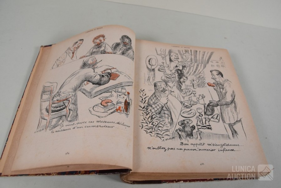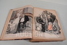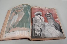 franstalig. Veel complete nummers (ca. 50 stuks) met spotprenten (kleur en zwart/wit) uit deze periode ingebonden in lederen omslag. Voor de echte verzamelaar. Afmeting 26x33 cm. Gezien de leeftijd in goede staat.