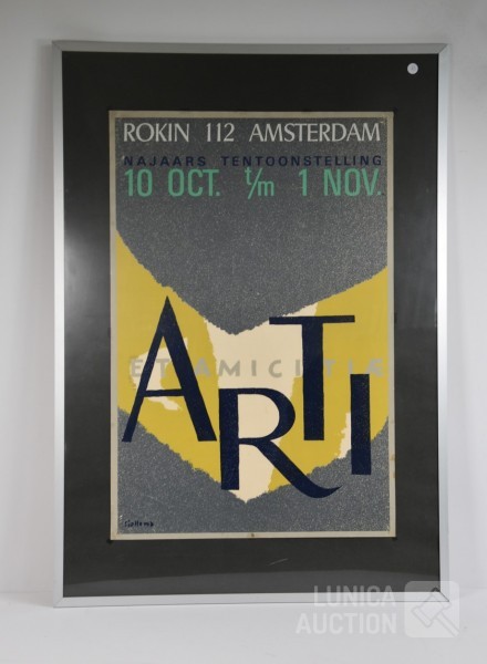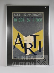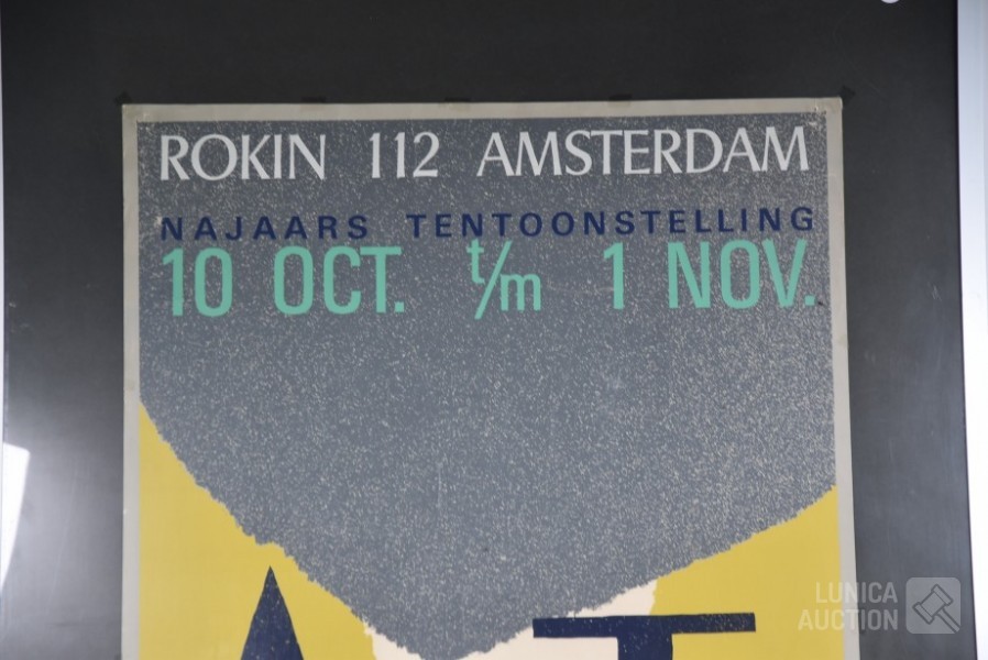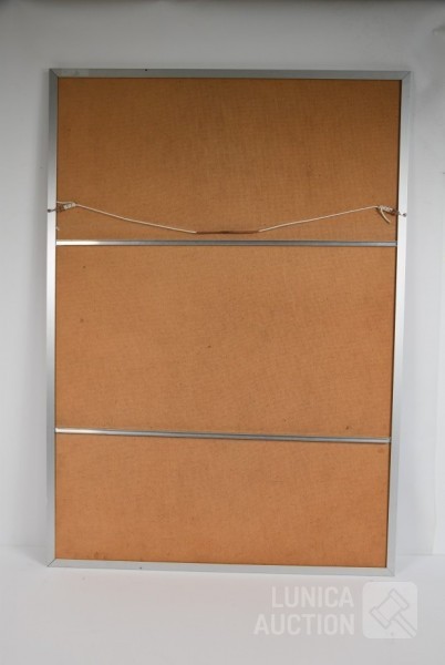 Ontwerp: JOOP SJOLLEMA. Ingelijst, achter plexiglas Afmeting 72x102 cm.