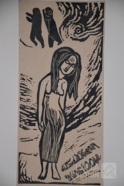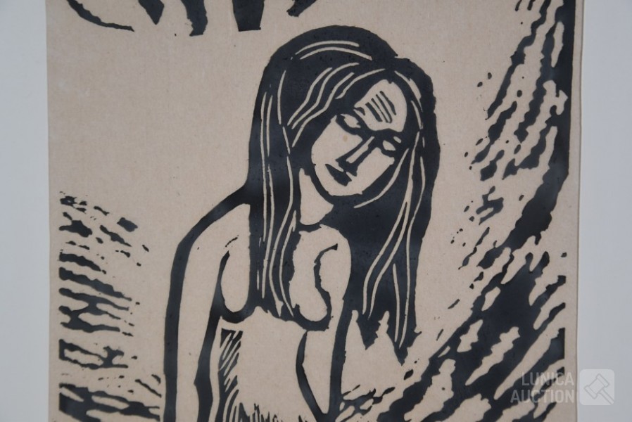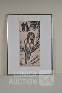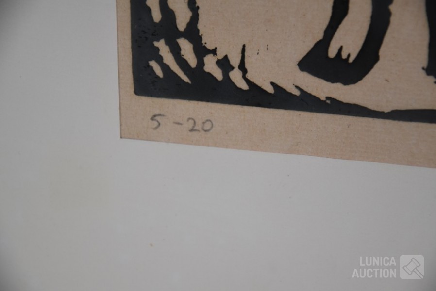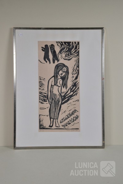 1973, "de overspelige". Oplage 5/20, handgesigneerd, R.O. Ingelijst, achter glas. Afmeting 50x66 cm.