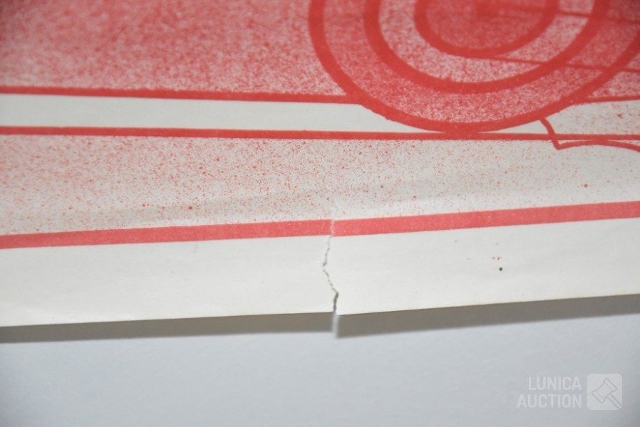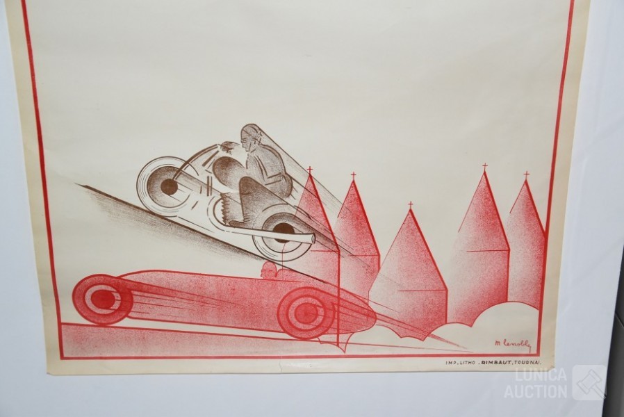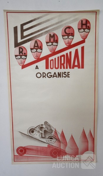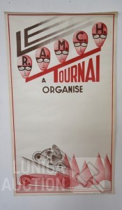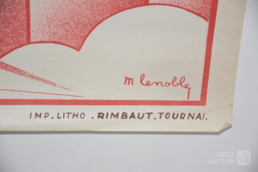 Ontwerp : M Lenoble; Druk: RIMBAUT, Doornik. Afmeting 62x108 cm. Klein scheurtje rand papier, verder in goede staat.