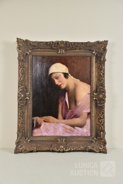 "vrouw met sigaret",Ingelijst. Afmeting 44x54 cm