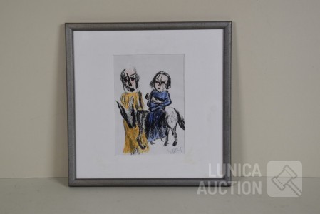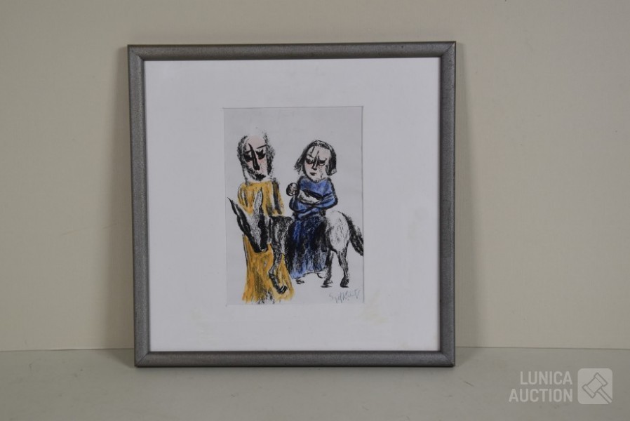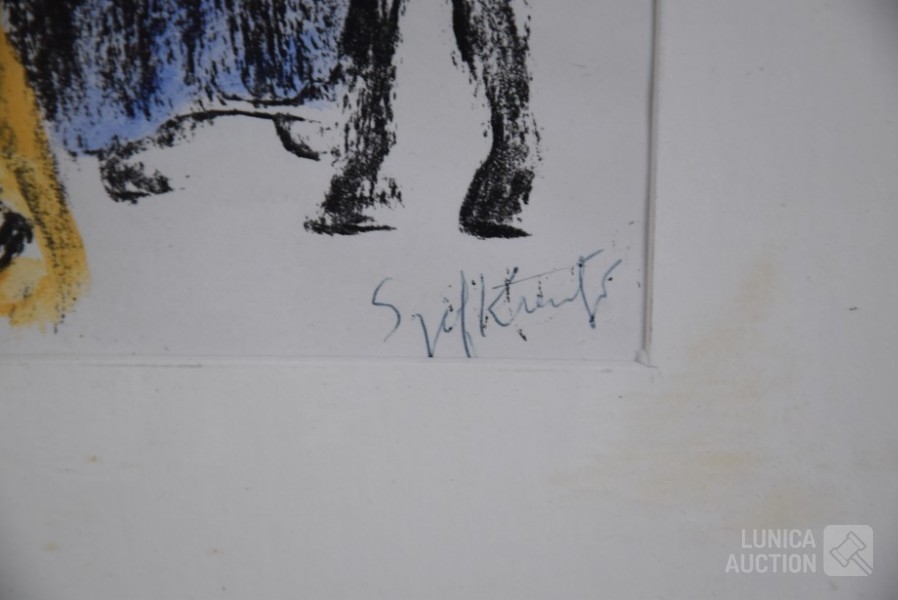 Gesigneerd R.O., 1996, Betreft een door Sjef Kreutzer zelf verstuurde kerstwens "zalig kerstfeest 1996" op papier, ingelijst, achter glas Zowel aan de voorzijde als achterzijde gesigneerd. Afmeting 32x32 cm