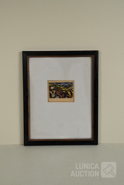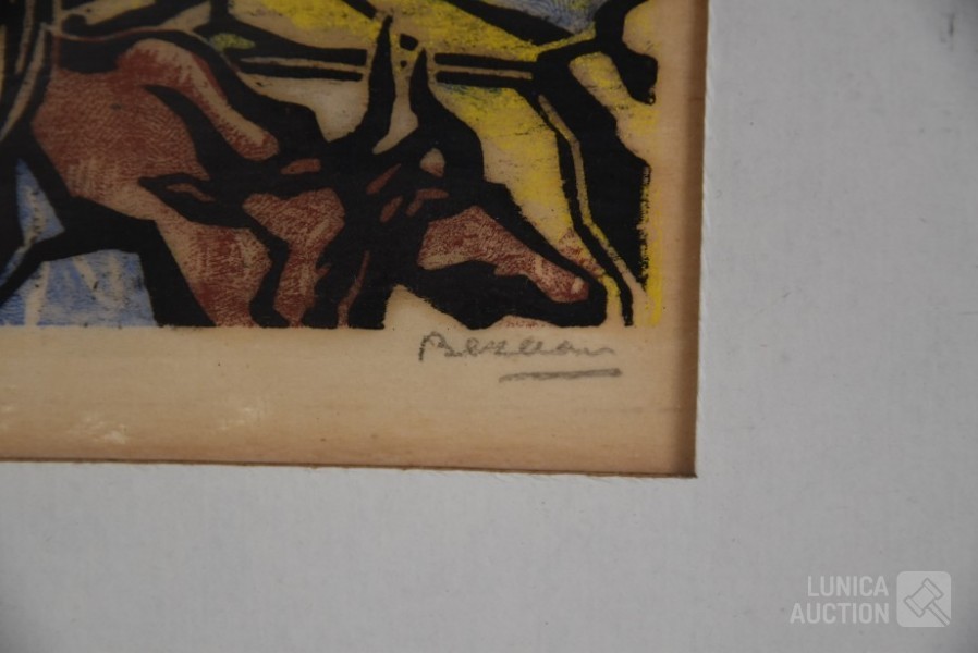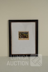Handgesigneerd R.O., ingelijst, achter glas. Afmeting 30x40 cm