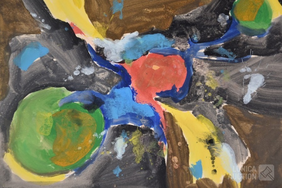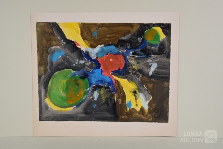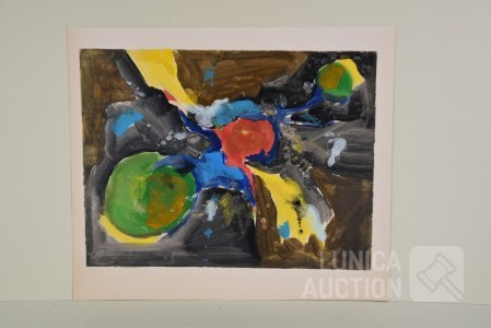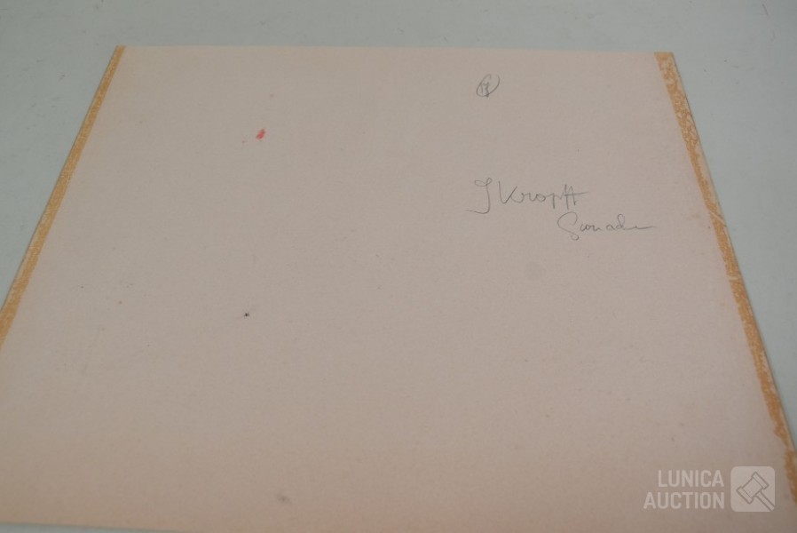 Handgesigneerdmet potlood L.O., niet ingelijst. Afmeting 48x40 cm