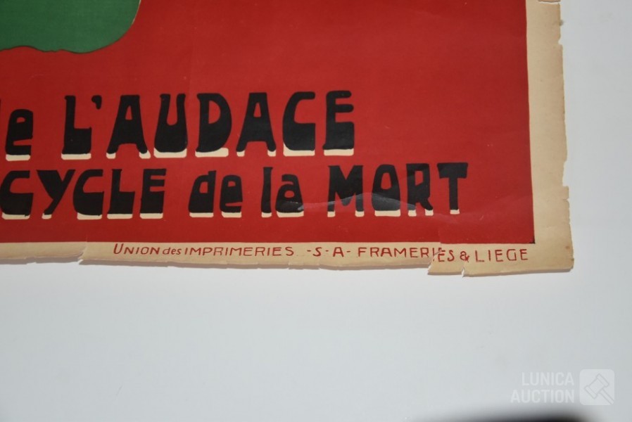 Afmeting 60x85 cm. Enkele scheuren in papier zijn gerestaureerd met zuurvrije tape.