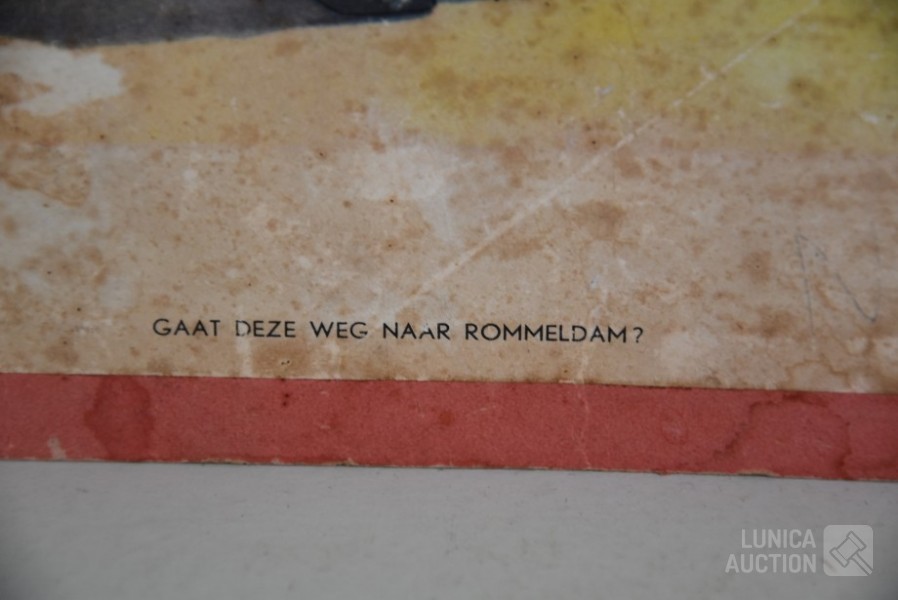 "gaat deze weg naar Rommeldam?", 1943, afmeting 57x31 cm. Uitgave: De muinck en Co, Amsterdam. K390 Diane Edition, Origineel.