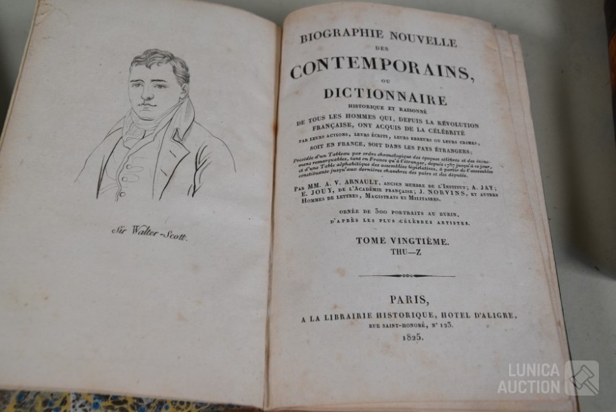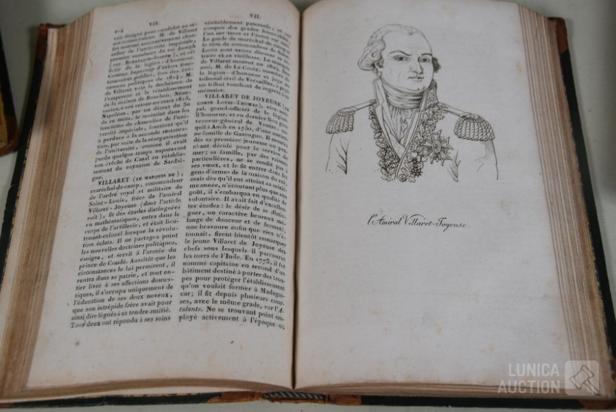 begin 19e eeuw. Franstalig. Met ca. 50 portretten. Kaften zijn in matige staat.