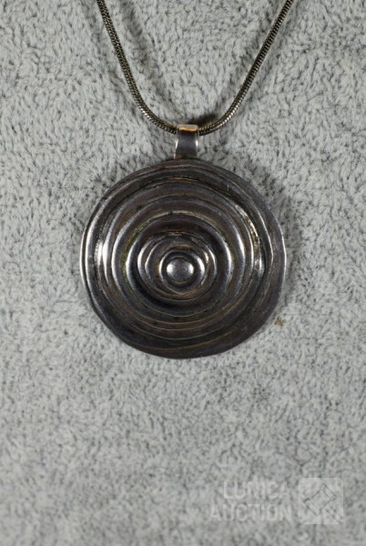Hanger gemerkt met KJ en zilver 925; Halsketting, lengte 40 cm, geen zilver. Totaal gewicht 12,5 gram.