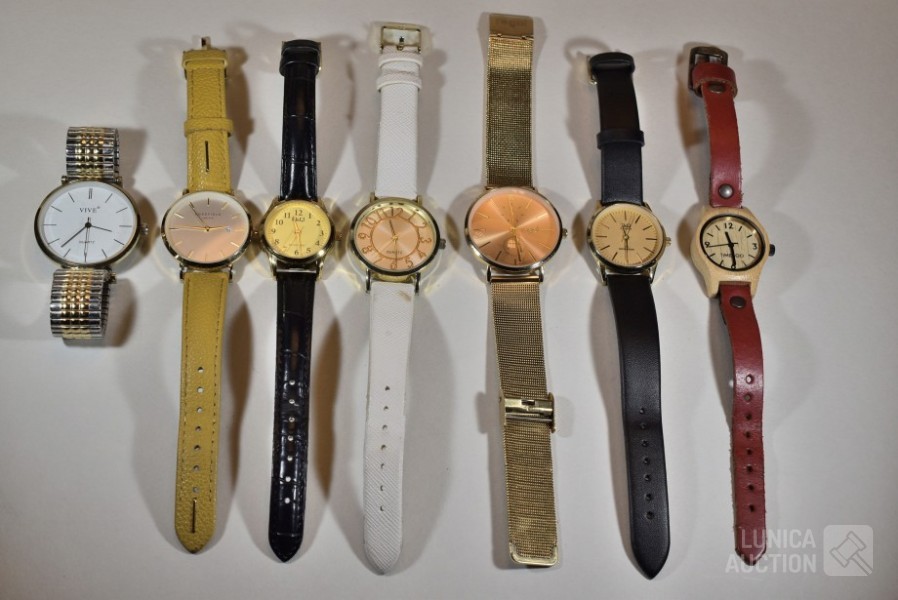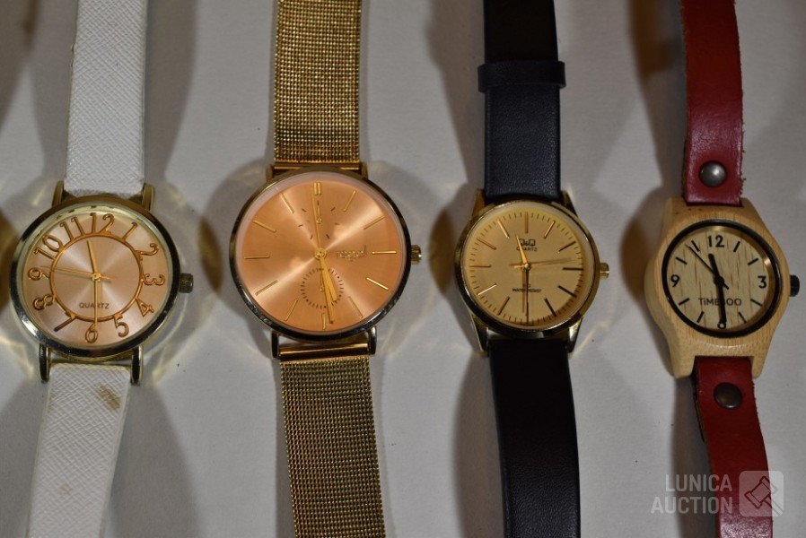 O.a. Regal, Rosefield AMS/NYC, VIVE. Deze horloges staan stil, niet getest. Timeboo bamboe, 2x Q&Q, True Spirit. Deze horloges zijn werkend, niet getest.