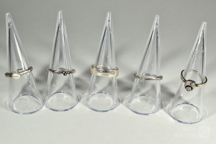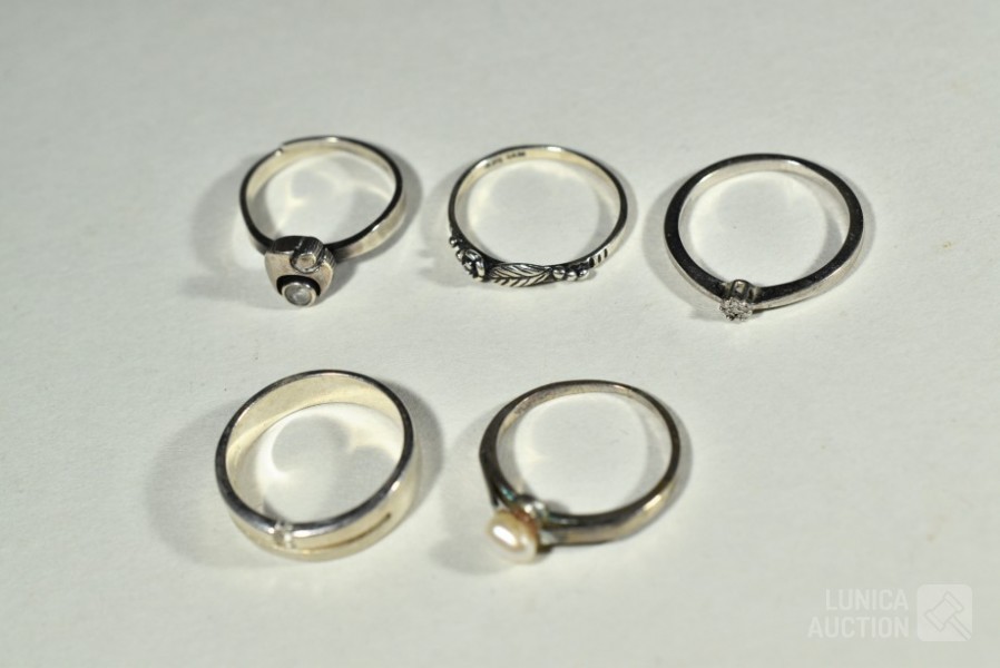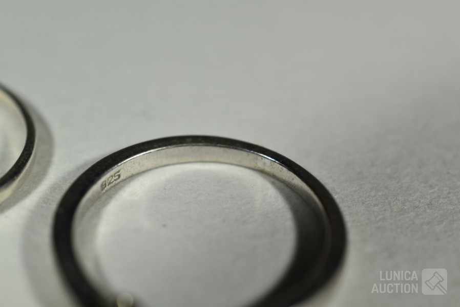 Gemerkt 4x 925, 1x Niet gemerkt. Ringmaat 17,5 mm en 18 mm. Totaal gewicht ca. 10 gram.