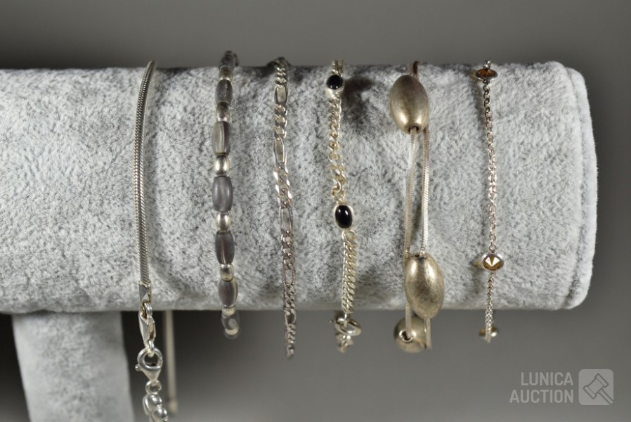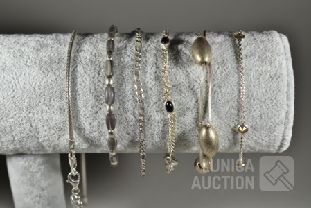 Gemerkt met 925 of "zwaard 925". Diverse modellen. Totaal gewicht ca. 24 gram.