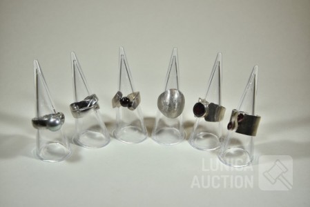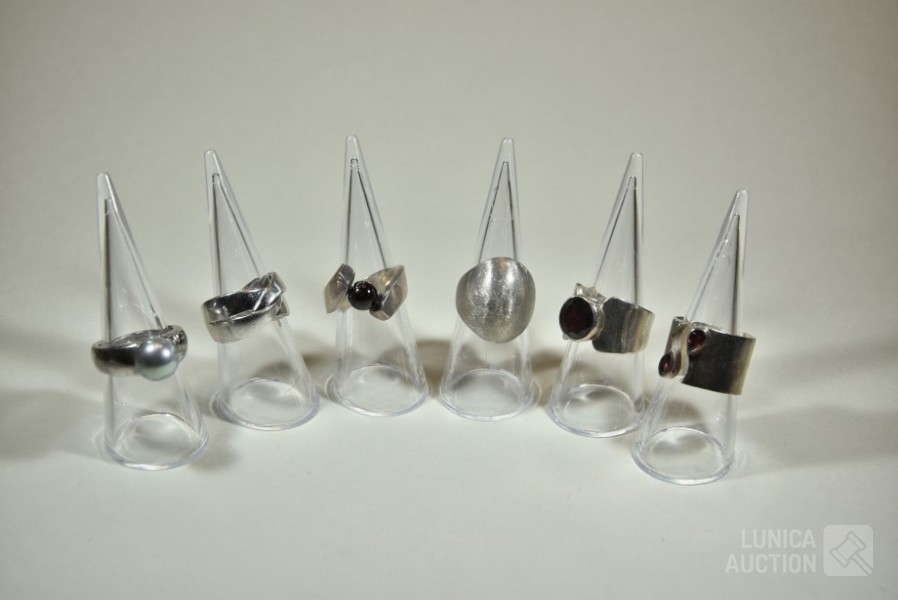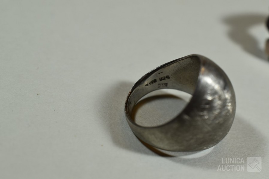 Gemerkt 5x 925, 1x "zwaard925". Ringmaat 17 mm, 17,5 mm en 18 mm. Totaal gewicht ca. 44 gram. Enkele met inzet van edelstenen