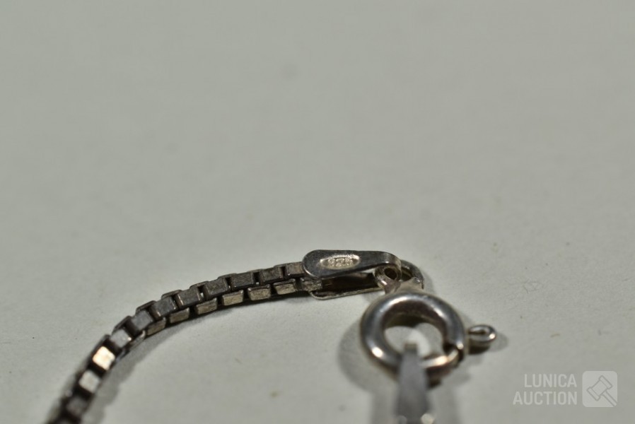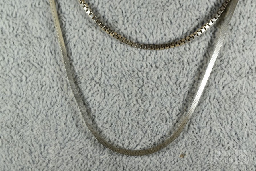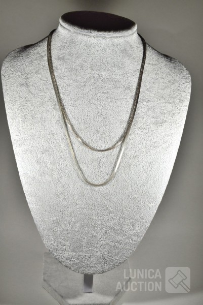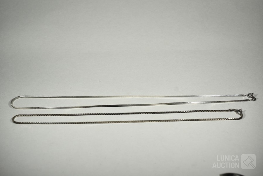 Gemerkt 925. Lengte 44 cm en 48 cm; Totaal gewicht ca. 13 gram