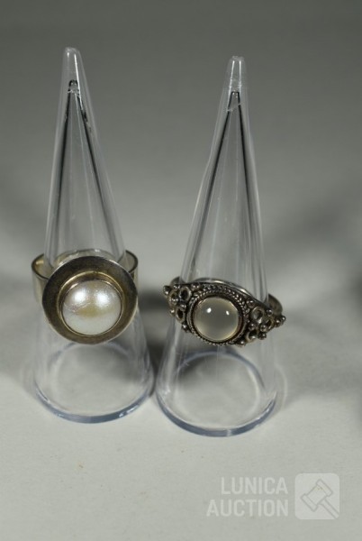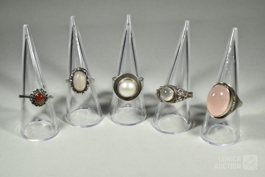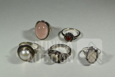 Gemerkt 3x 925, 1x "Zwaard925", 1x niet gemerkt; Ringmaat 17 mm, 17,5 mm, 18 mm en 19 mm. Totaal gewicht ca. 28,5 gram. Met inzet van diverse edelstenen