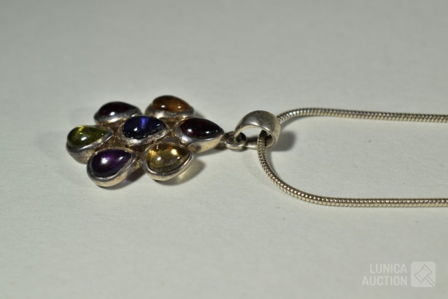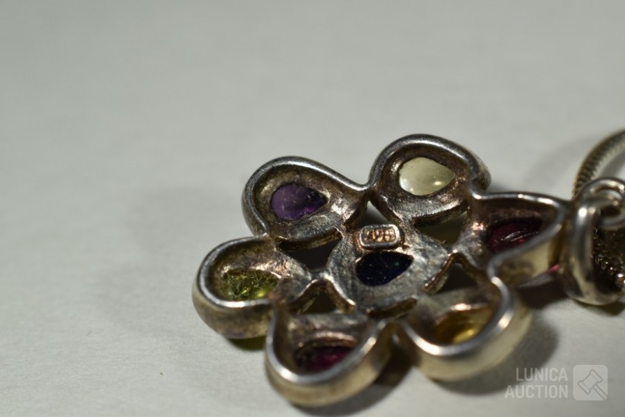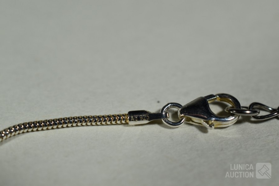 Afmeting hanger 17x22 mm. Totaal gewicht (ketting+hanger) ca. 9 gram. Lengte halsketting 42 cm.