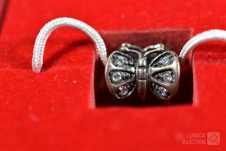 Bedel in de vorm van vlinder. Gewicht 3,5 gram, in luxe sieradendoosje.