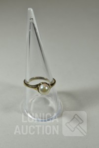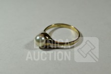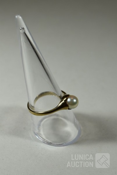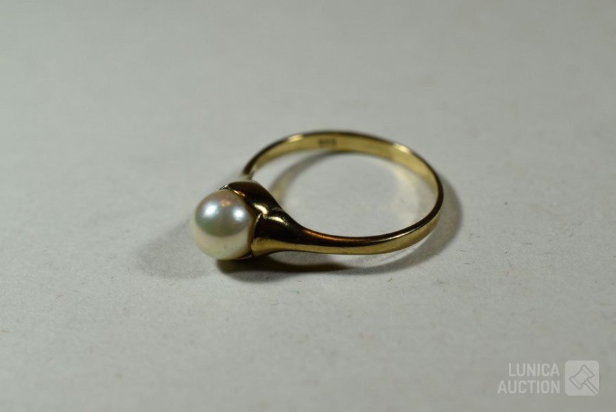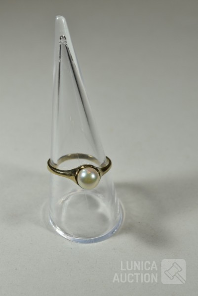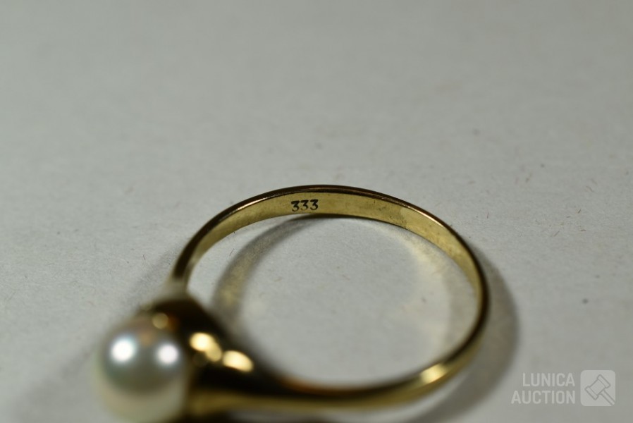 gemerkt met 333, met inzet van parel, ringmaat 19 mm. Gewicht ca. 2,0 gram